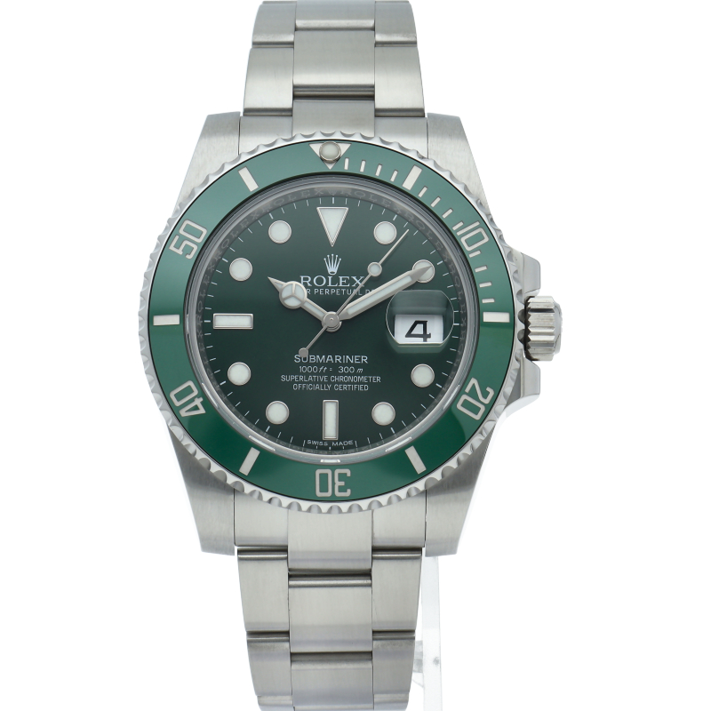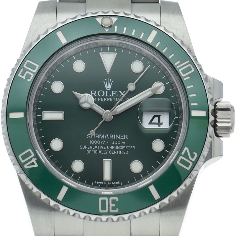 水深300mでも信頼性と精度が保証されているサブマリーナー。116610LVは文字盤とベゼルにロレックスのコーポレートカラーであるグリーンを用いることで特別なモデルとなっています。