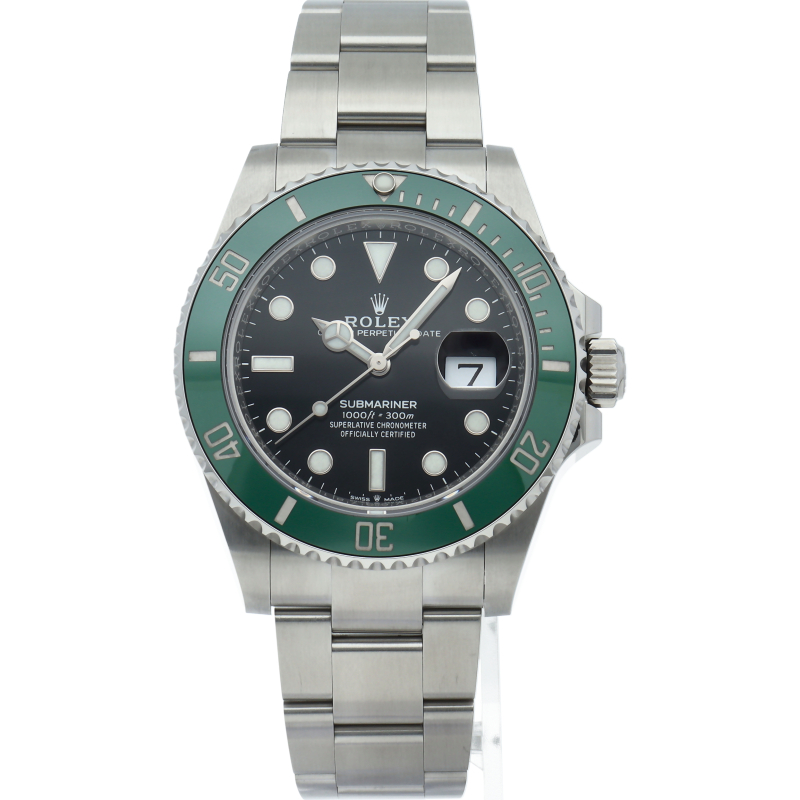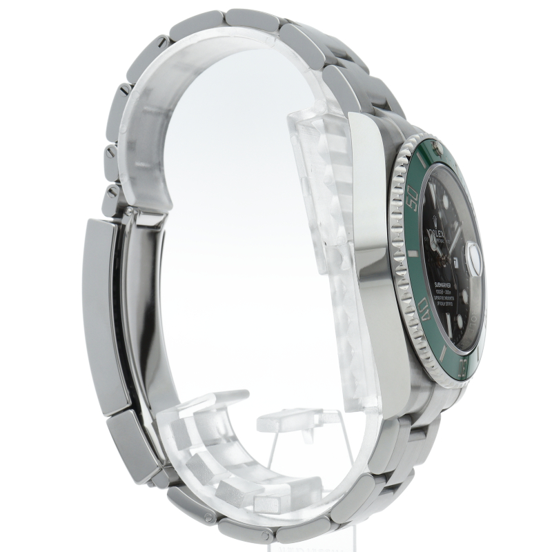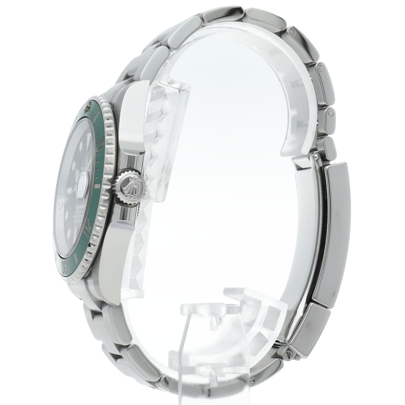 2003年にサブマリーナ誕生50周年記念として発表され高い人気を誇る“グリーンサブマリーナ”が新型自社ムーブメントを搭載しモデルチェンジしました。ブランドカラーであるグリーンのセラミックベゼルはそのままに文字盤がブラックになりました。ケースサイズは前作より1mm大きい41mmとなります。