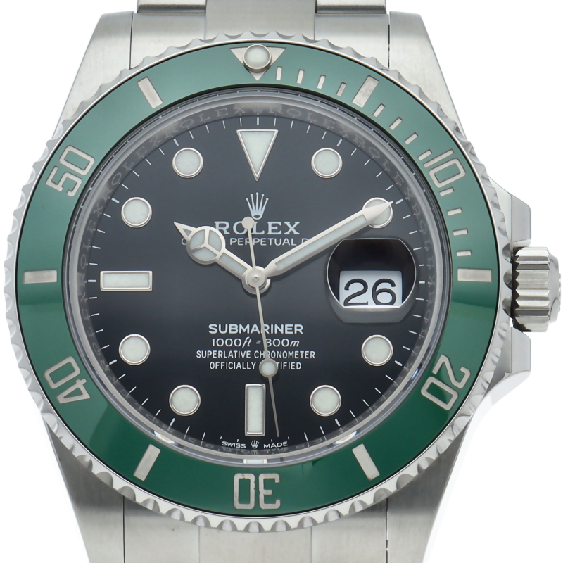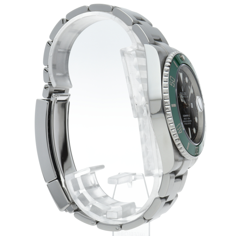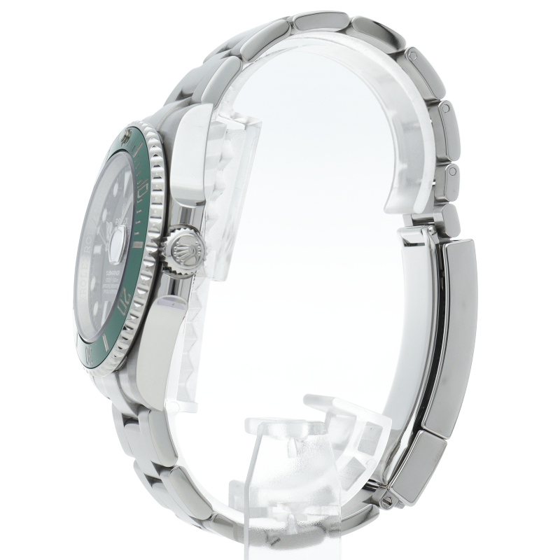 2003年にサブマリーナ誕生50周年記念として発表され高い人気を誇る“グリーンサブマリーナ”が新型自社ムーブメントを搭載しモデルチェンジしました。ブランドカラーであるグリーンのセラミックベゼルはそのままに文字盤がブラックになりました。ケースサイズは前作より1mm大きい41mmとなります。