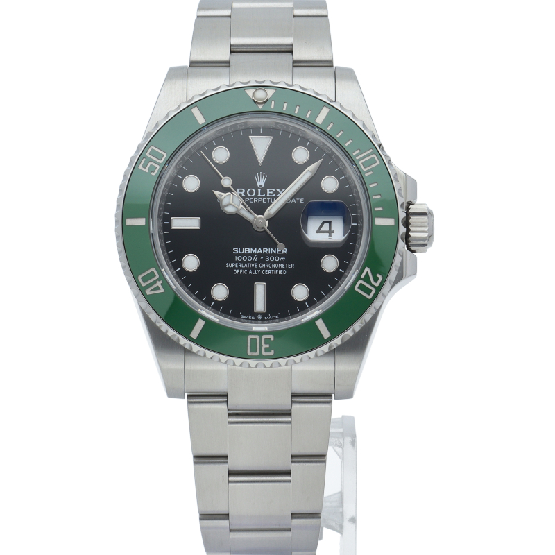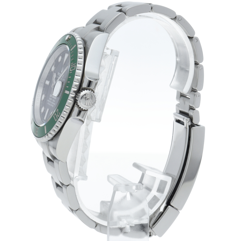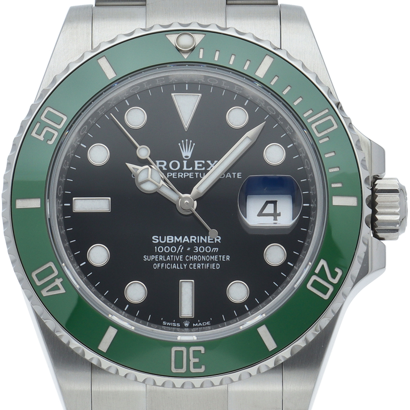 2003年にサブマリーナ誕生50周年記念として発表され高い人気を誇る“グリーンサブマリーナ”が新型自社ムーブメントを搭載しモデルチェンジしました。ブランドカラーであるグリーンのセラミックベゼルはそのままに文字盤がブラックになりました。ケースサイズは前作より1mm大きい41mmとなります。