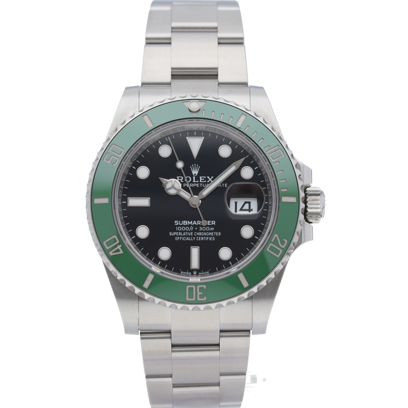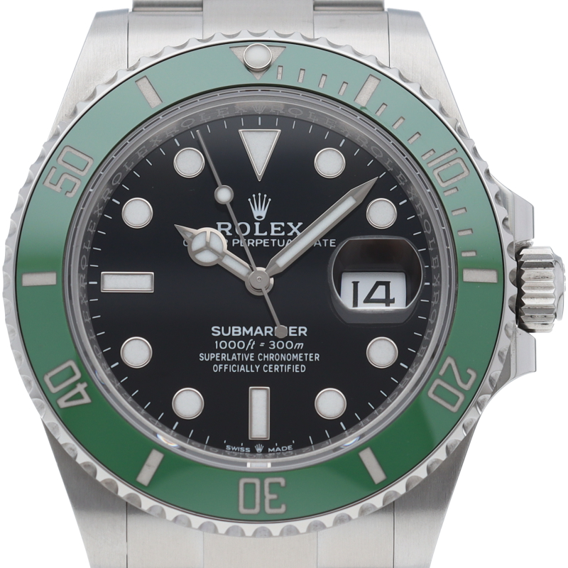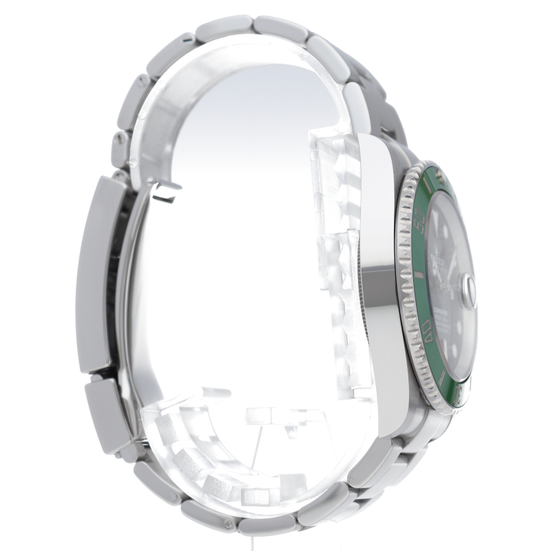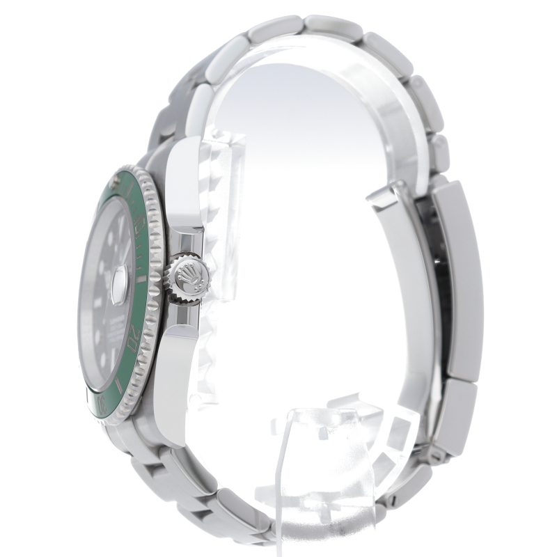 2003年にサブマリーナ誕生50周年記念として発表され高い人気を誇る“グリーンサブマリーナ”が新型自社ムーブメントを搭載しモデルチェンジしました。ブランドカラーであるグリーンのセラミックベゼルはそのままに文字盤がブラックになりました。ケースサイズは前作より1mm大きい41mmとなります。
