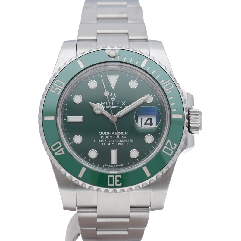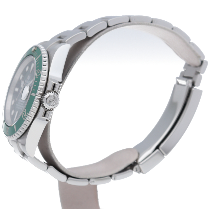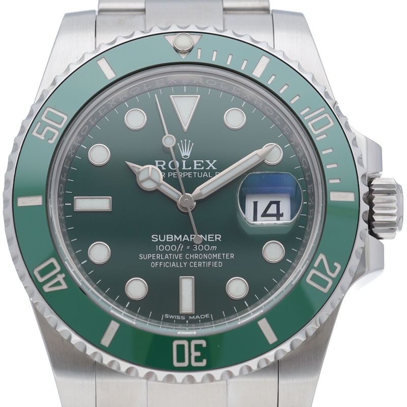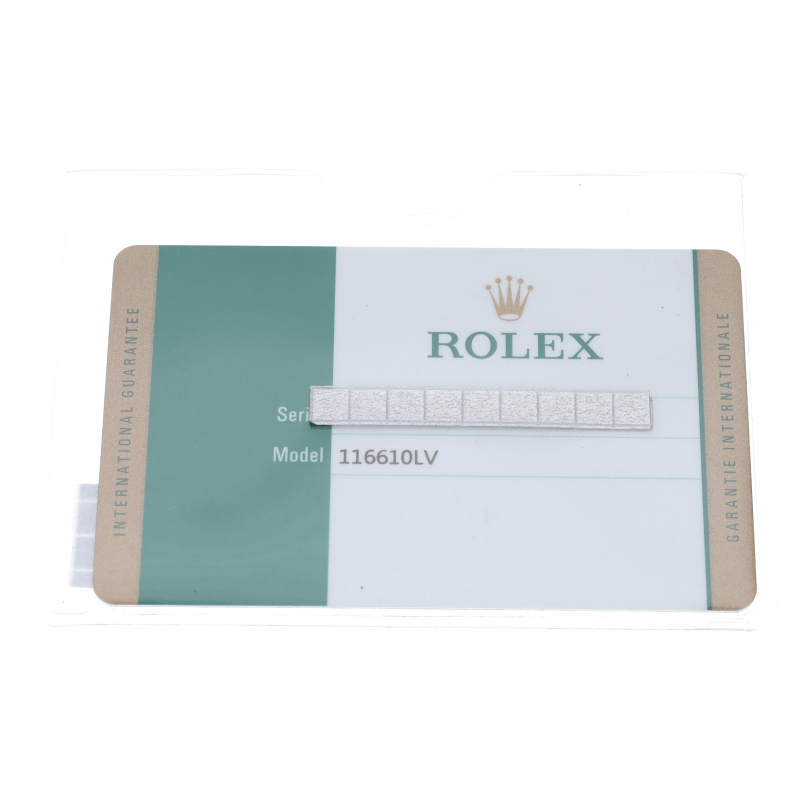 水深300mでも信頼性と精度が保証されているサブマリーナー。116610LVは文字盤とベゼルにロレックスのコーポレートカラーであるグリーンを用いることで特別なモデルとなっています。