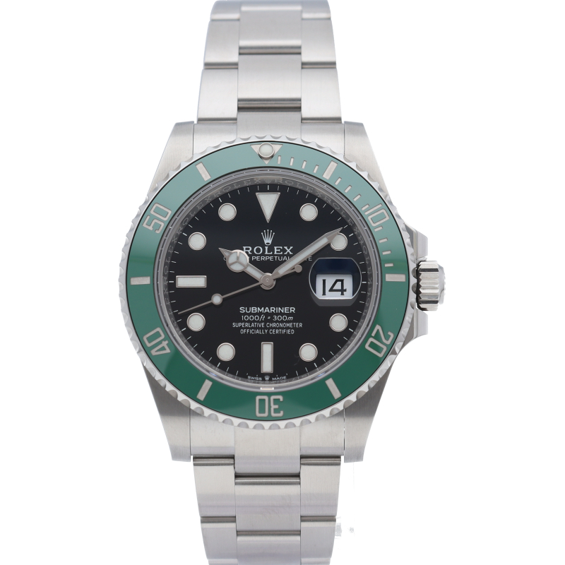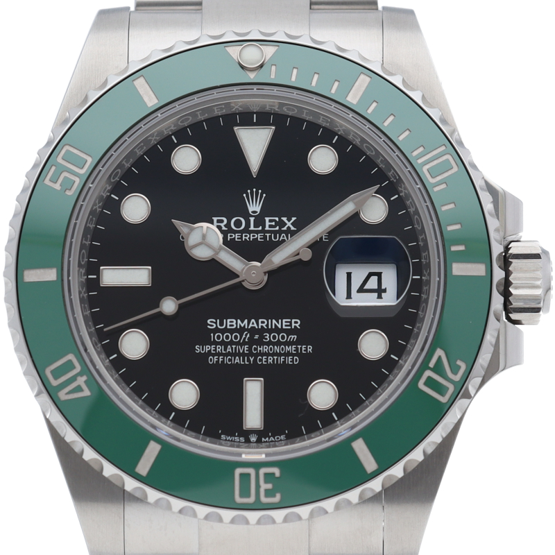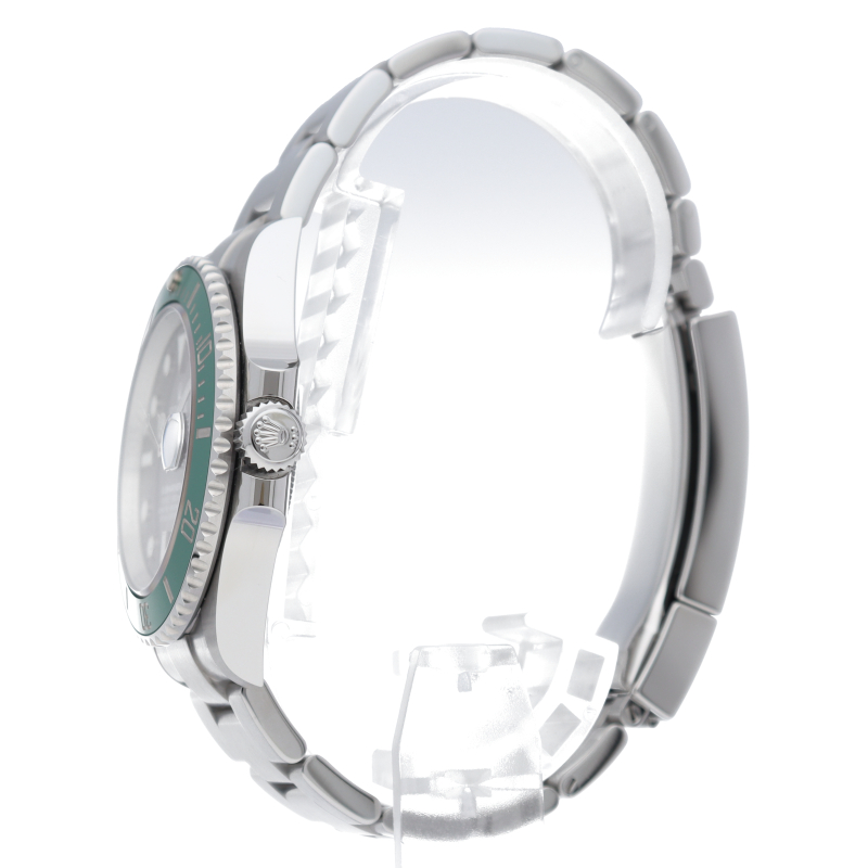 2003年にサブマリーナ誕生50周年記念として発表され高い人気を誇る“グリーンサブマリーナ”が新型自社ムーブメントを搭載しモデルチェンジしました。ブランドカラーであるグリーンのセラミックベゼルはそのままに文字盤がブラックになりました。ケースサイズは前作より1mm大きい41mmとなります。