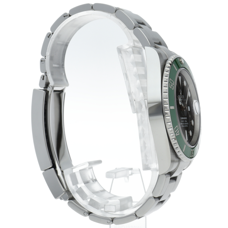 2003年にサブマリーナ誕生50周年記念として発表され高い人気を誇る“グリーンサブマリーナ”が新型自社ムーブメントを搭載しモデルチェンジしました。ブランドカラーであるグリーンのセラミックベゼルはそのままに文字盤がブラックになりました。ケースサイズは前作より1mm大きい41mmとなります。