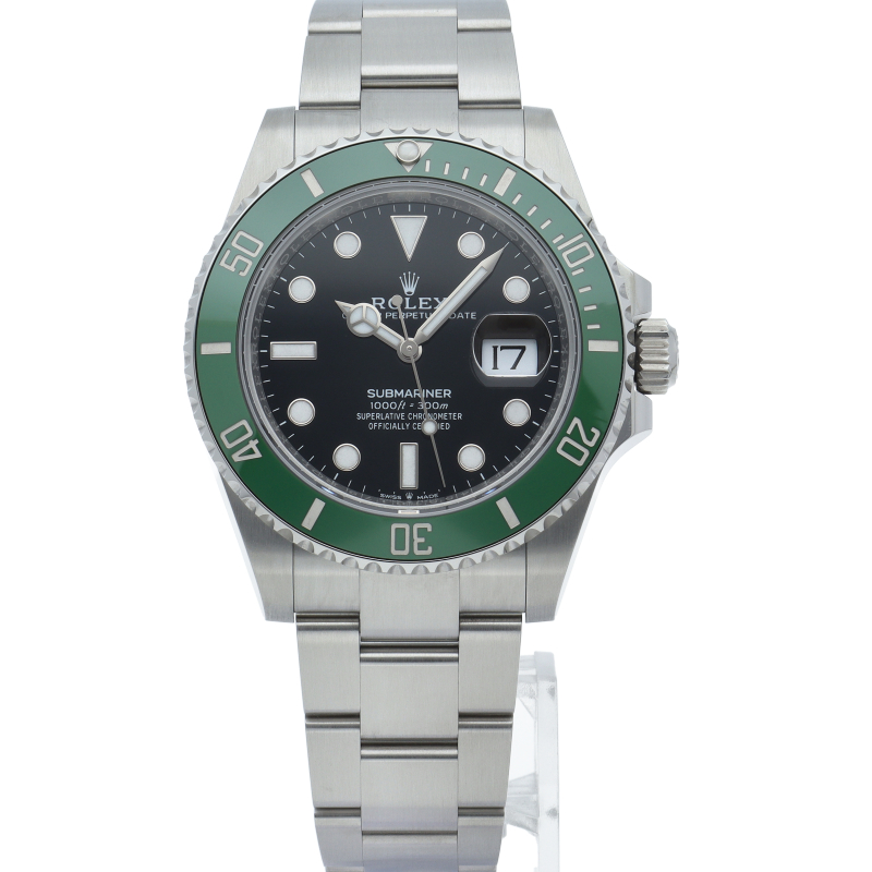 2003年にサブマリーナ誕生50周年記念として発表され高い人気を誇る“グリーンサブマリーナ”が新型自社ムーブメントを搭載しモデルチェンジしました。ブランドカラーであるグリーンのセラミックベゼルはそのままに文字盤がブラックになりました。ケースサイズは前作より1mm大きい41mmとなります。
