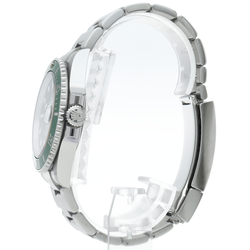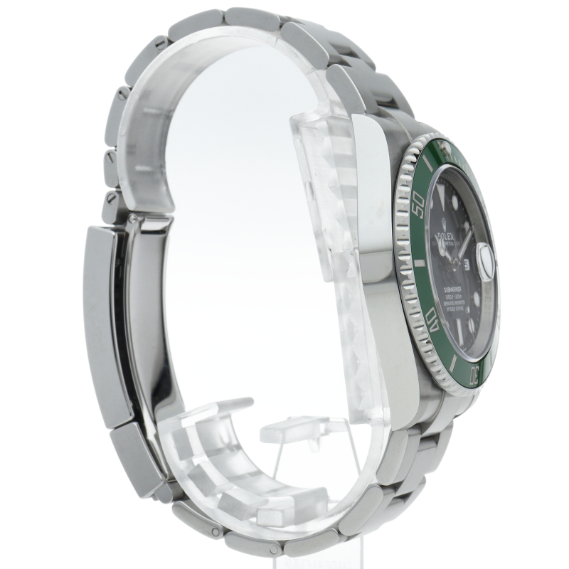 2003年にサブマリーナ誕生50周年記念として発表され高い人気を誇る“グリーンサブマリーナ”が新型自社ムーブメントを搭載しモデルチェンジしました。ブランドカラーであるグリーンのセラミックベゼルはそのままに文字盤がブラックになりました。ケースサイズは前作より1mm大きい41mmとなります。