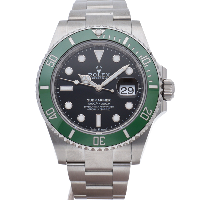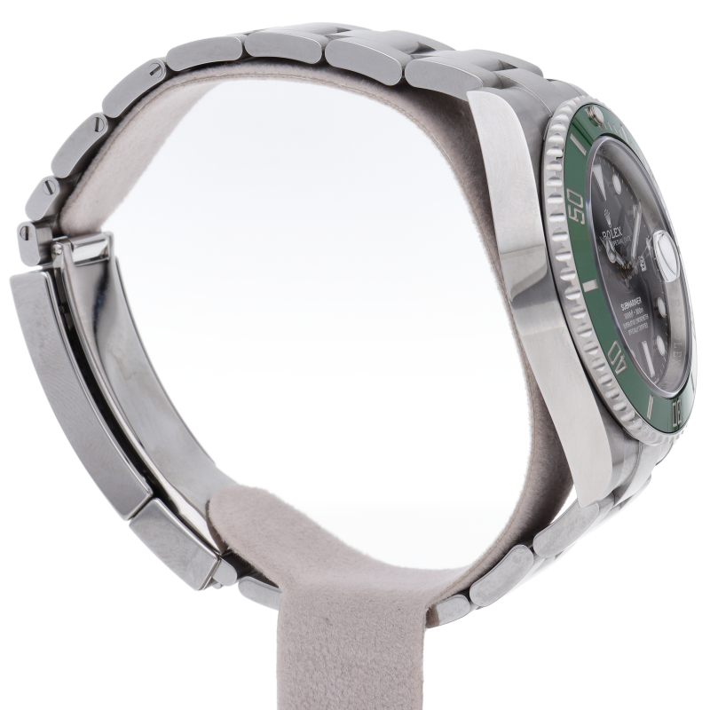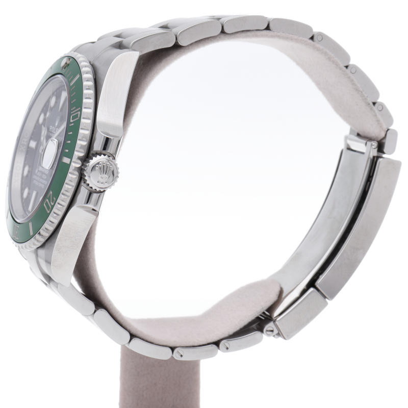 2003年にサブマリーナ誕生50周年記念として発表され高い人気を誇る“グリーンサブマリーナ”が新型自社ムーブメントを搭載しモデルチェンジしました。ブランドカラーであるグリーンのセラミックベゼルはそのままに文字盤がブラックになりました。ケースサイズは前作より1mm大きい41mmとなります。