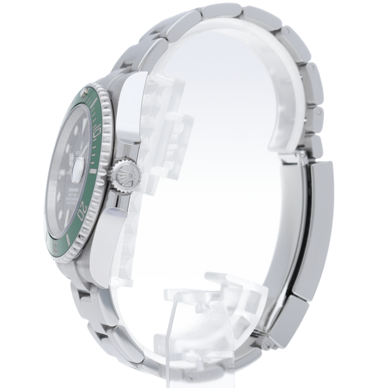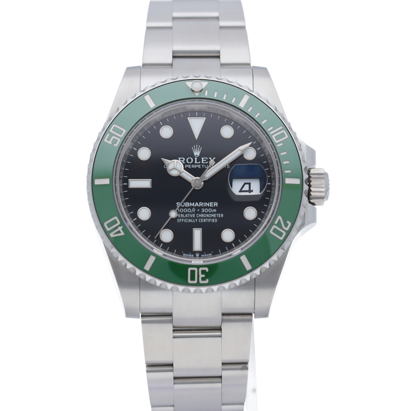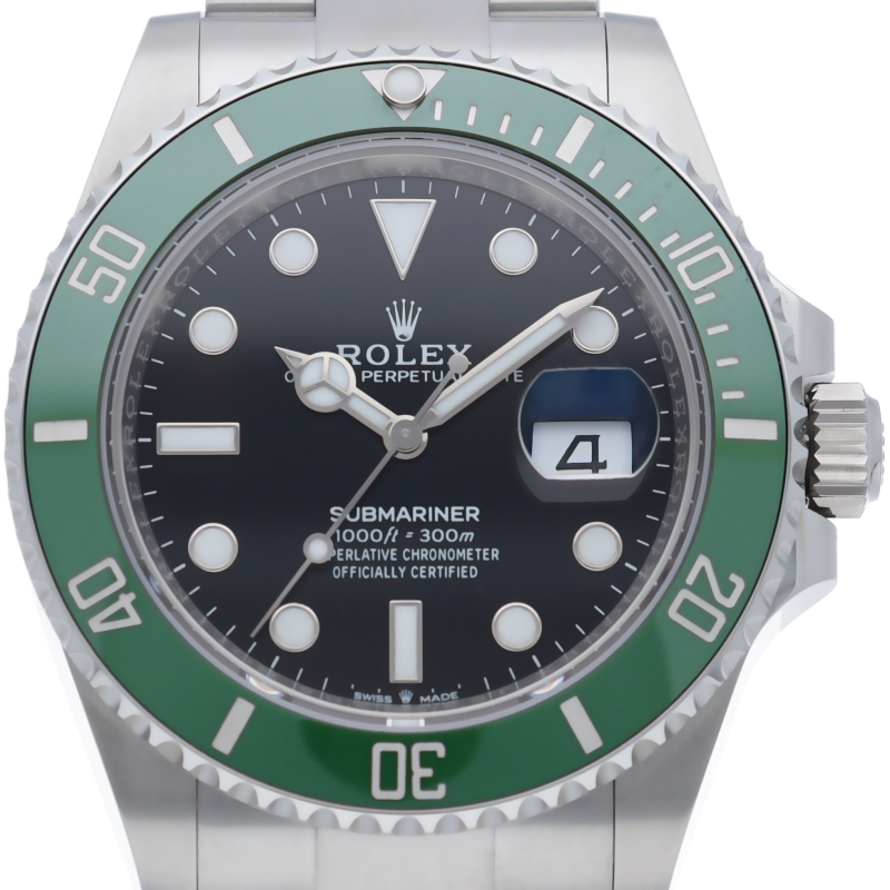 2003年にサブマリーナ誕生50周年記念として発表され高い人気を誇る“グリーンサブマリーナ”が新型自社ムーブメントを搭載しモデルチェンジしました。ブランドカラーであるグリーンのセラミックベゼルはそのままに文字盤がブラックになりました。ケースサイズは前作より1mm大きい41mmとなります。