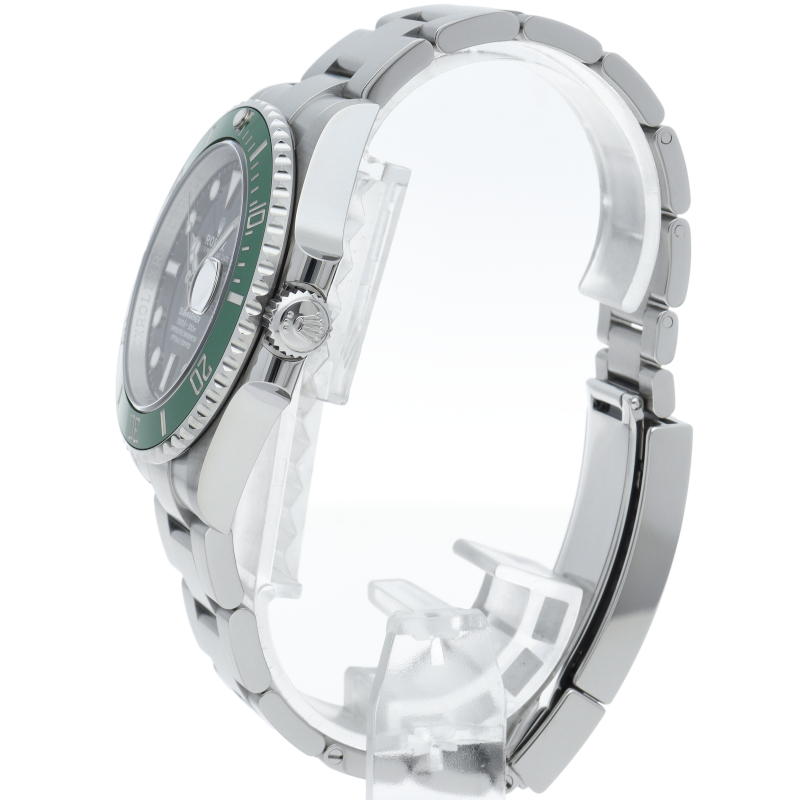 2003年にサブマリーナ誕生50周年記念として発表され高い人気を誇る“グリーンサブマリーナ”が新型自社ムーブメントを搭載しモデルチェンジしました。ブランドカラーであるグリーンのセラミックベゼルはそのままに文字盤がブラックになりました。ケースサイズは前作より1mm大きい41mmとなります。