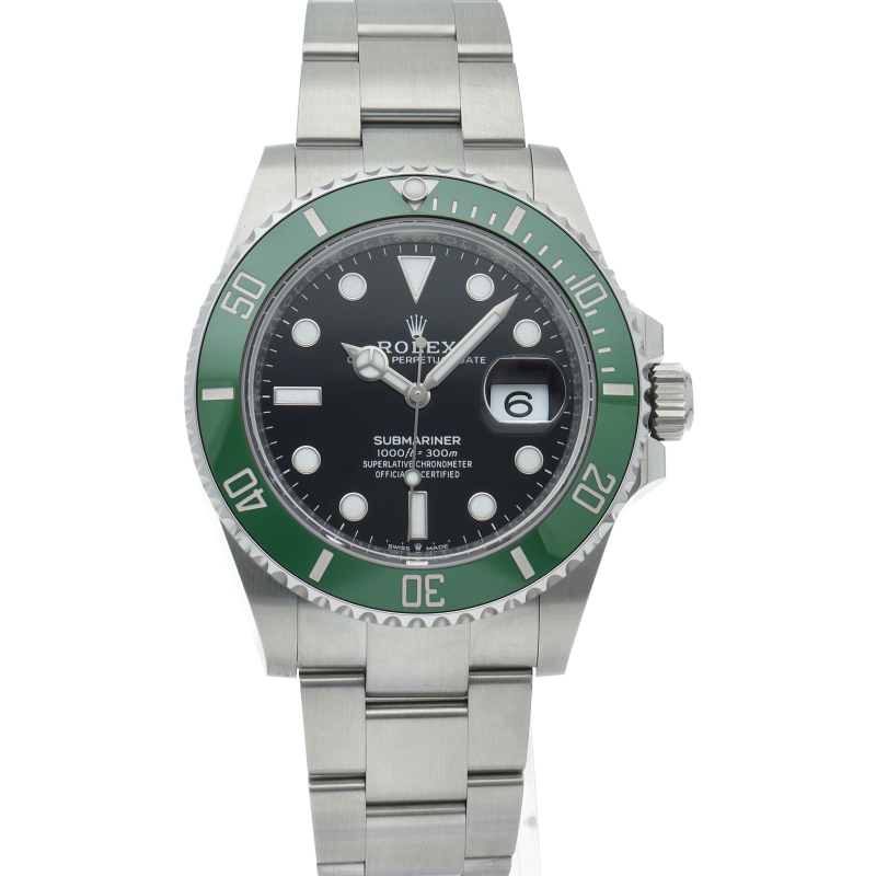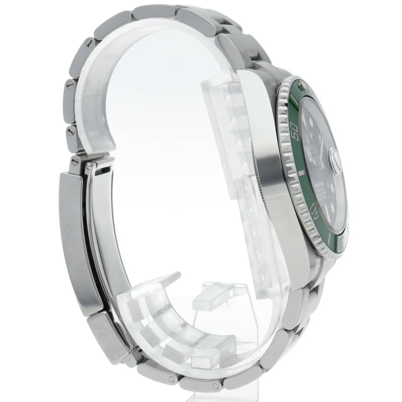 2003年にサブマリーナ誕生50周年記念として発表され高い人気を誇る“グリーンサブマリーナ”が新型自社ムーブメントを搭載しモデルチェンジしました。ブランドカラーであるグリーンのセラミックベゼルはそのままに文字盤がブラックになりました。ケースサイズは前作より1mm大きい41mmとなります。
