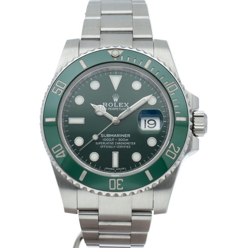水深300mでも信頼性と精度が保証されているサブマリーナー。116610LVは文字盤とベゼルにロレックスのコーポレートカラーであるグリーンを用いることで特別なモデルとなっています。