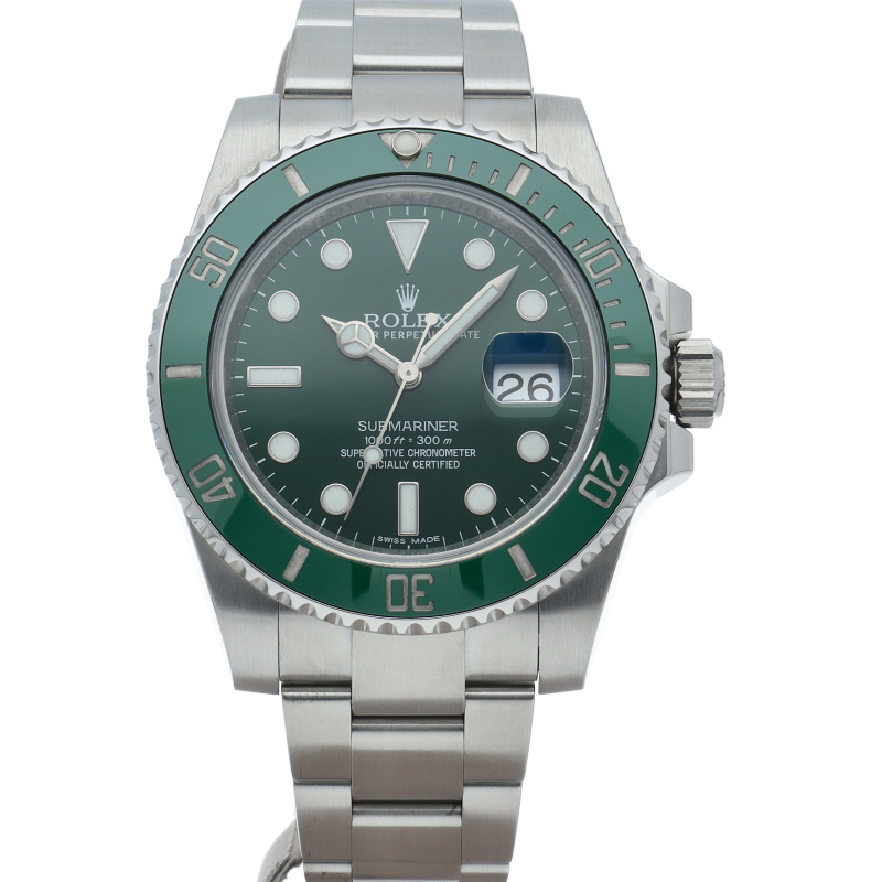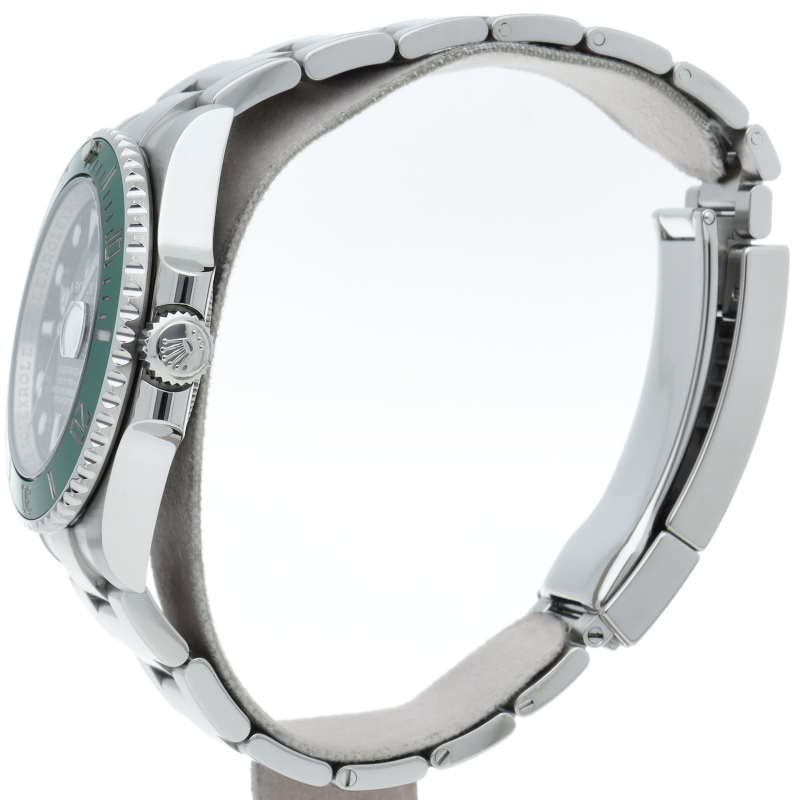 水深300mでも信頼性と精度が保証されているサブマリーナー。116610LVは文字盤とベゼルにロレックスのコーポレートカラーであるグリーンを用いることで特別なモデルとなっています。