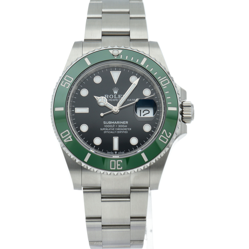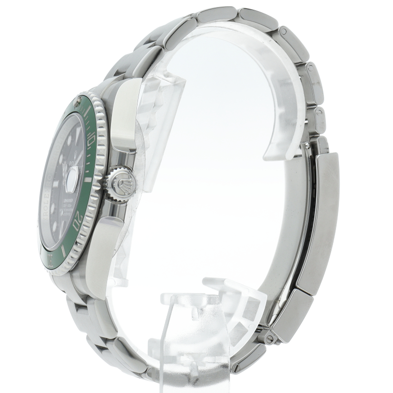 2003年にサブマリーナ誕生50周年記念として発表され高い人気を誇る“グリーンサブマリーナ”が新型自社ムーブメントを搭載しモデルチェンジしました。ブランドカラーであるグリーンのセラミックベゼルはそのままに文字盤がブラックになりました。ケースサイズは前作より1mm大きい41mmとなります。