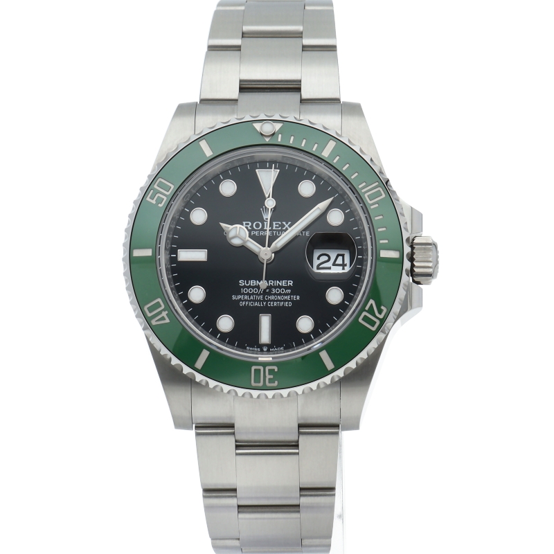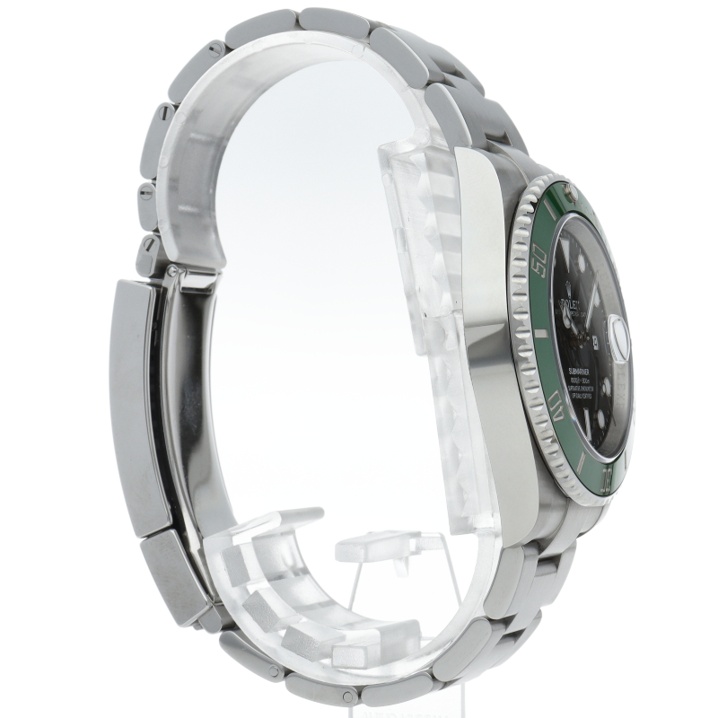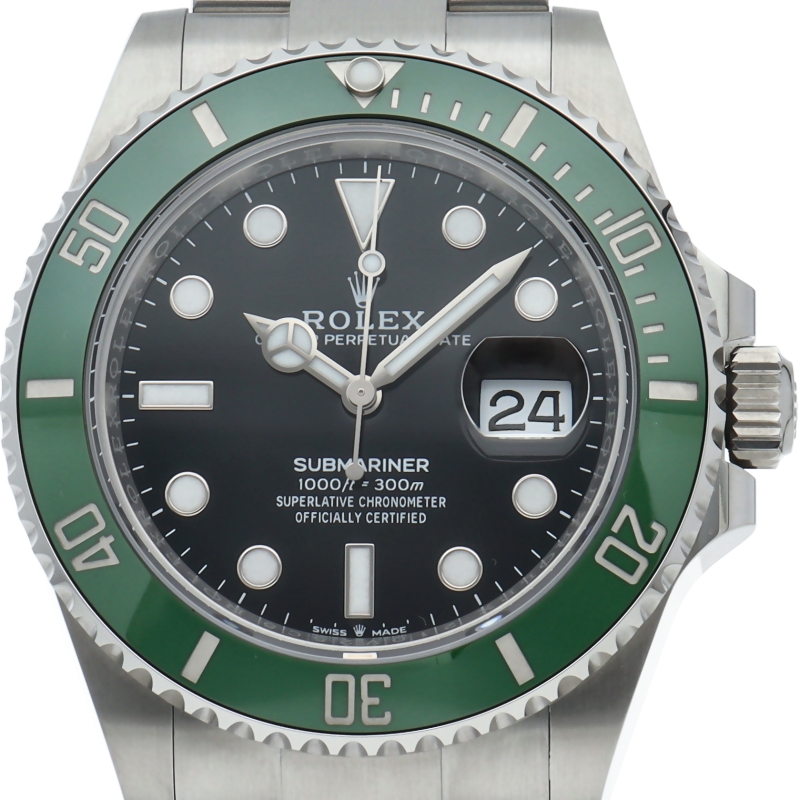 2003年にサブマリーナ誕生50周年記念として発表され高い人気を誇る“グリーンサブマリーナ”が新型自社ムーブメントを搭載しモデルチェンジしました。ブランドカラーであるグリーンのセラミックベゼルはそのままに文字盤がブラックになりました。ケースサイズは前作より1mm大きい41mmとなります。