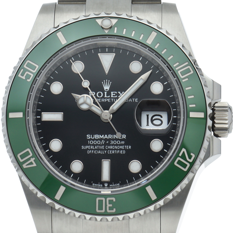 2003年にサブマリーナ誕生50周年記念として発表され高い人気を誇る“グリーンサブマリーナ”が新型自社ムーブメントを搭載しモデルチェンジしました。ブランドカラーであるグリーンのセラミックベゼルはそのままに文字盤がブラックになりました。ケースサイズは前作より1mm大きい41mmとなります。