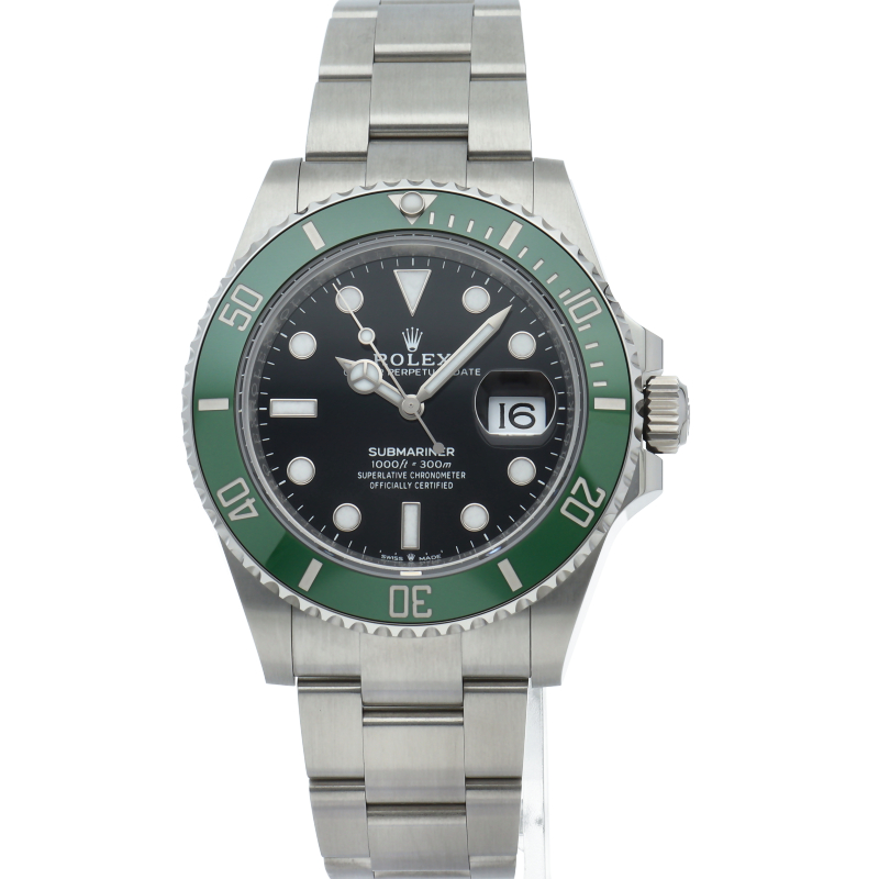 2003年にサブマリーナ誕生50周年記念として発表され高い人気を誇る“グリーンサブマリーナ”が新型自社ムーブメントを搭載しモデルチェンジしました。ブランドカラーであるグリーンのセラミックベゼルはそのままに文字盤がブラックになりました。ケースサイズは前作より1mm大きい41mmとなります。