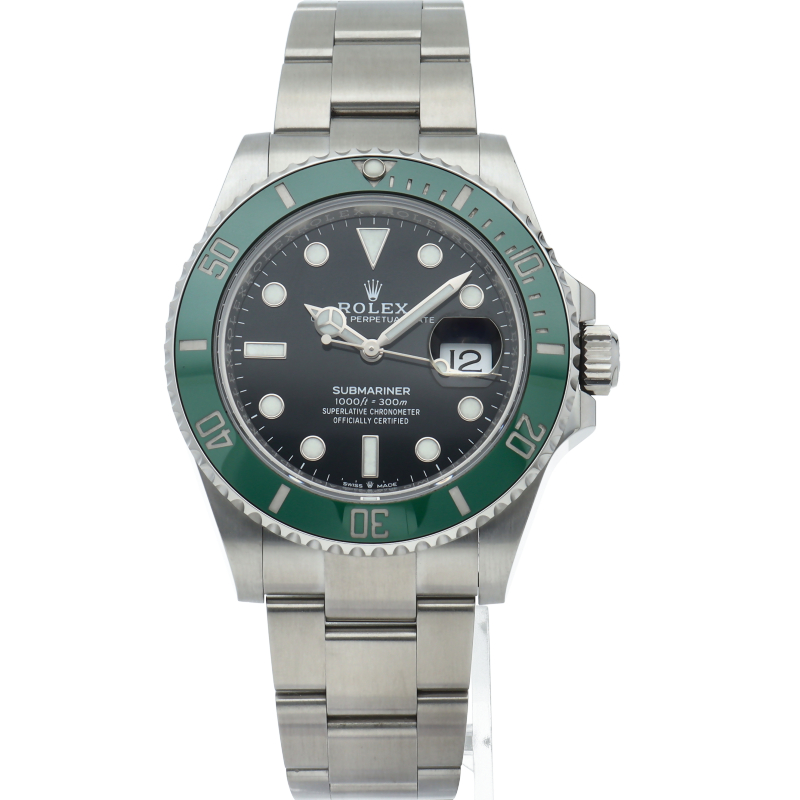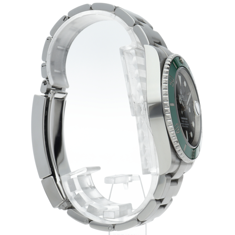 2003年にサブマリーナ誕生50周年記念として発表され高い人気を誇る“グリーンサブマリーナ”が新型自社ムーブメントを搭載しモデルチェンジしました。ブランドカラーであるグリーンのセラミックベゼルはそのままに文字盤がブラックになりました。ケースサイズは前作より1mm大きい41mmとなります。
