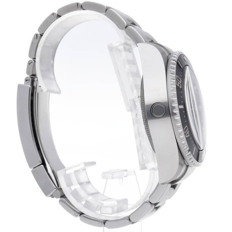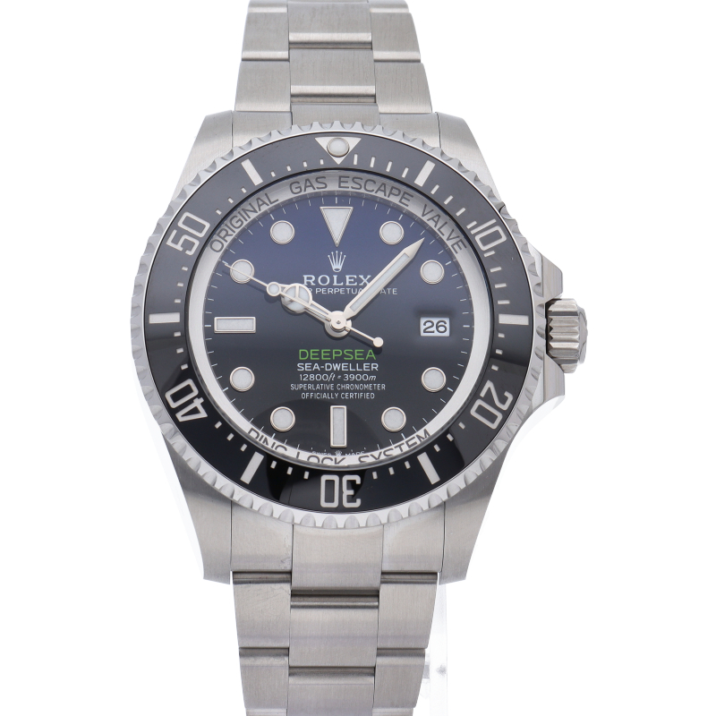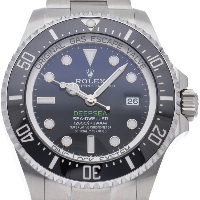 クロノメーター認定のモデルです。44mmの大型ケースと3900mの圧倒的な防水性能が特徴で、前作に続き強力な圧力にも耐える事が出来る“リングロックシステム”を搭載しております。ケースサイドにはヘリウムエスケープバルブを備え、ベゼルは耐傷性に優れたセラミック製です。バックルにはロレックス独自の“グライドロックエクステンションシステム”を備え、工具無しで長さの微調整が可能です