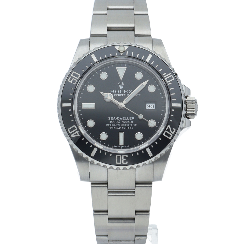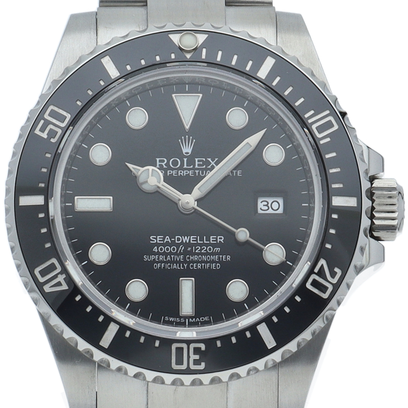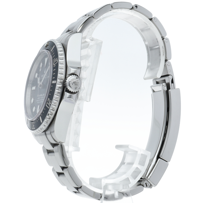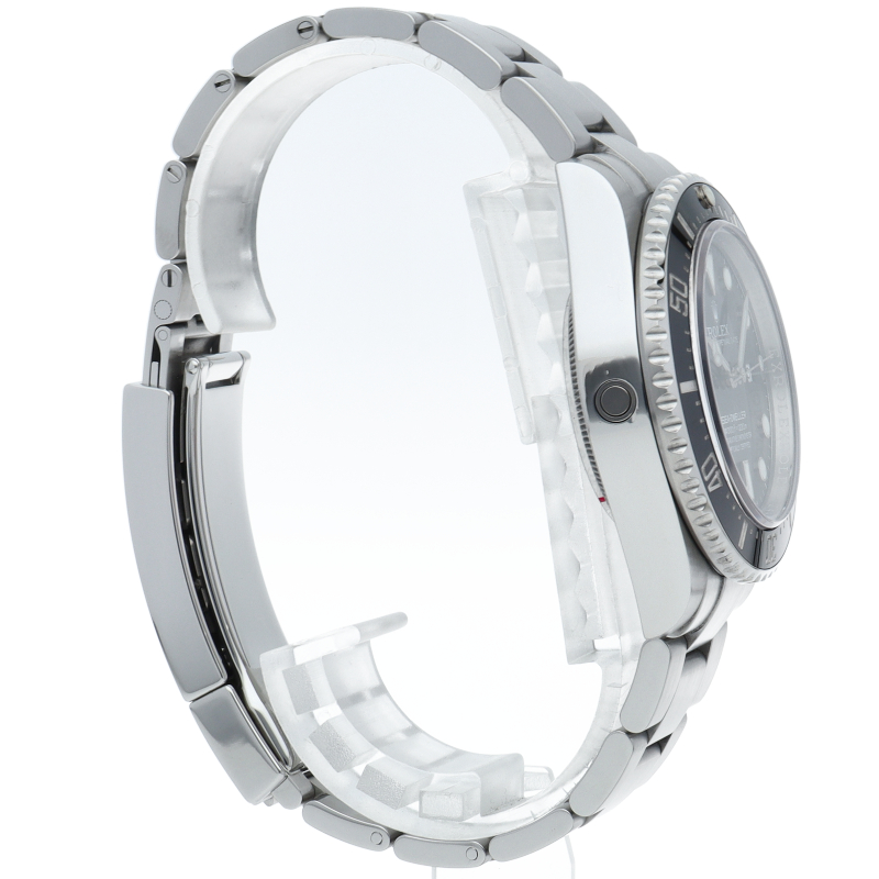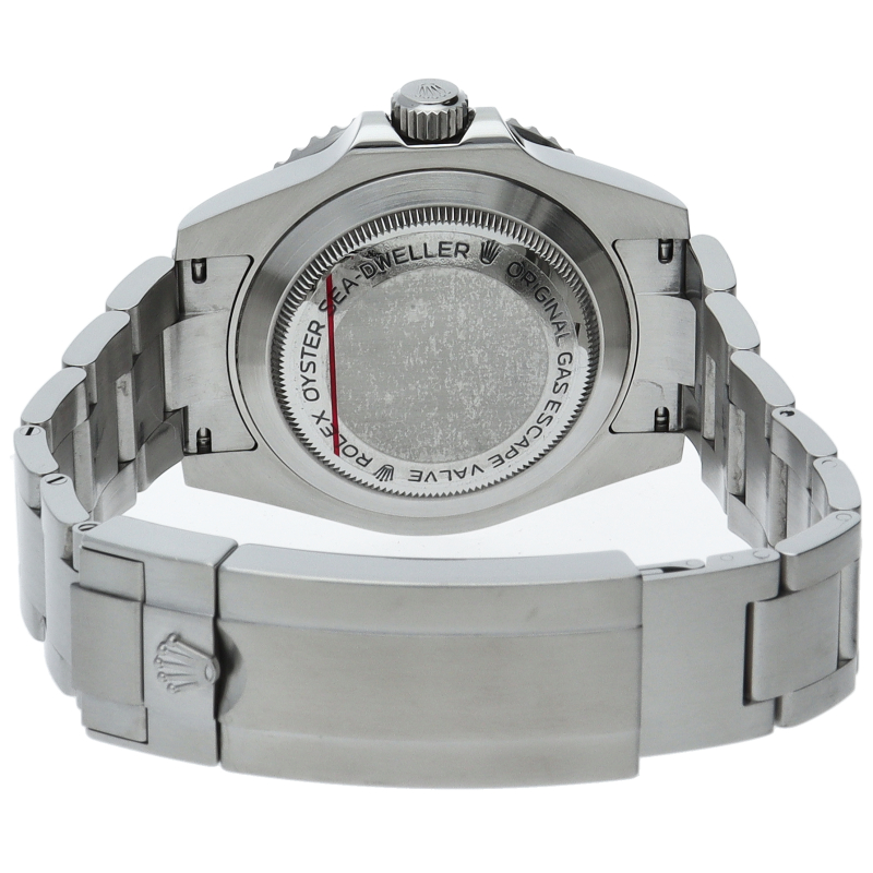 ディープシーのケースサイズ43mmから40mmに少しサイズダウンしてサブマリーナと同じサイズになりましたが、耐性に優れたセラクロム逆回転防止ベゼル、ブレスレットの微調整が容易なグライドロックエクステンションシステム、長時間発光するクロマライトインデックスなどの革新的な最新技術が搭載されたプロ仕様のダイバーズウォッチに仕上げられています。
