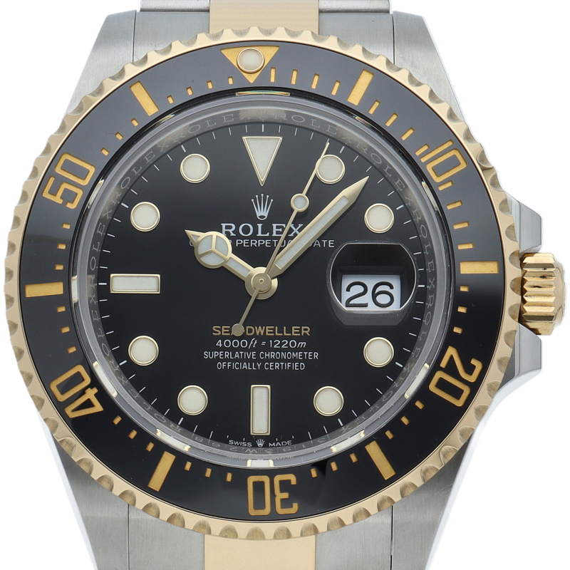 こちらは2019年のバーゼルワールドで発表されたシードゥエラーコレクションで初めてK18イエローゴールドを使用したロレゾールモデルです。直径43mmのケースには14件もの特許を取得し、新開発の脱進機のクロナジーエスケープメントを装備した上で70時間ものロングパワーリザーブを確保した自社開発キャリバー3235を搭載します。