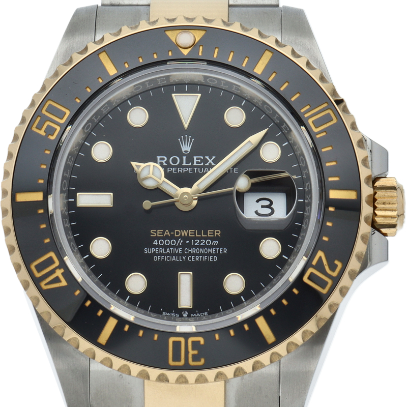 こちらは2019年のバーゼルワールドで発表されたシードゥエラーコレクションで初めてK18イエローゴールドを使用したロレゾールモデルです。直径43mmのケースには14件もの特許を取得し、新開発の脱進機のクロナジーエスケープメントを装備した上で70時間ものロングパワーリザーブを確保した自社開発キャリバー3235を搭載します。