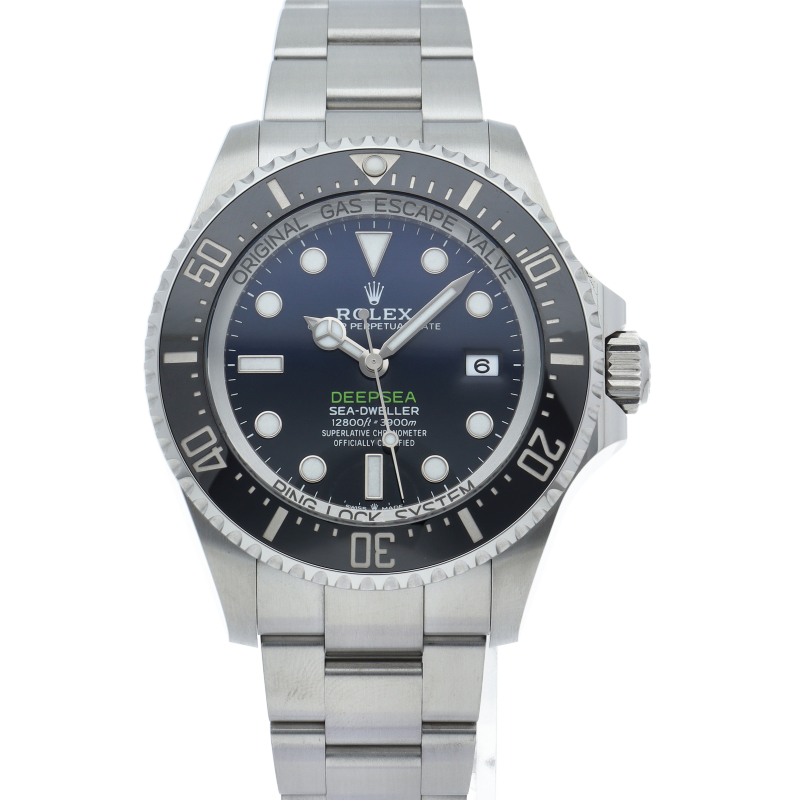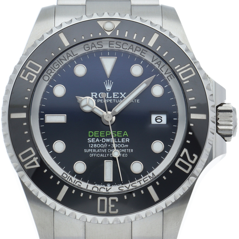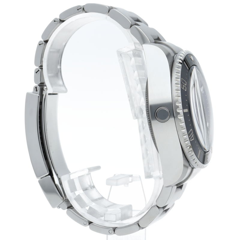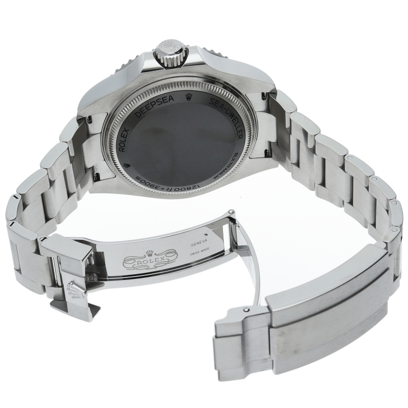 クロノメーター認定のモデルです。44mmの大型ケースと3900mの圧倒的な防水性能が特徴で、前作に続き強力な圧力にも耐える事が出来る“リングロックシステム”を搭載しております。ケースサイドにはヘリウムエスケープバルブを備え、ベゼルは耐傷性に優れたセラミック製です。バックルにはロレックス独自の“グライドロックエクステンションシステム”を備え、工具無しで長さの微調整が可能です