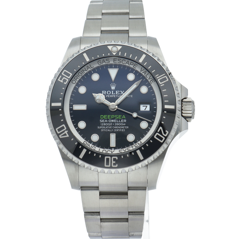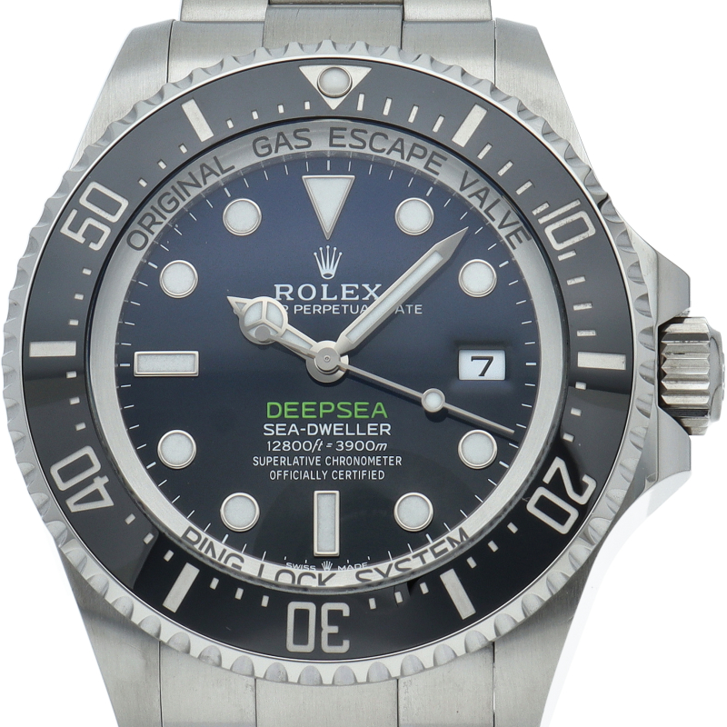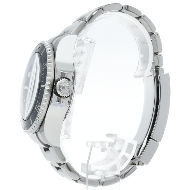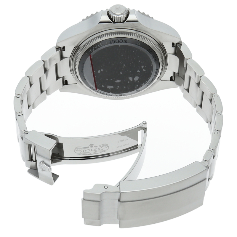 クロノメーター認定のモデルです。44mmの大型ケースと3900mの圧倒的な防水性能が特徴で、前作に続き強力な圧力にも耐える事が出来る“リングロックシステム”を搭載しております。ケースサイドにはヘリウムエスケープバルブを備え、ベゼルは耐傷性に優れたセラミック製です。バックルにはロレックス独自の“グライドロックエクステンションシステム”を備え、工具無しで長さの微調整が可能です。
