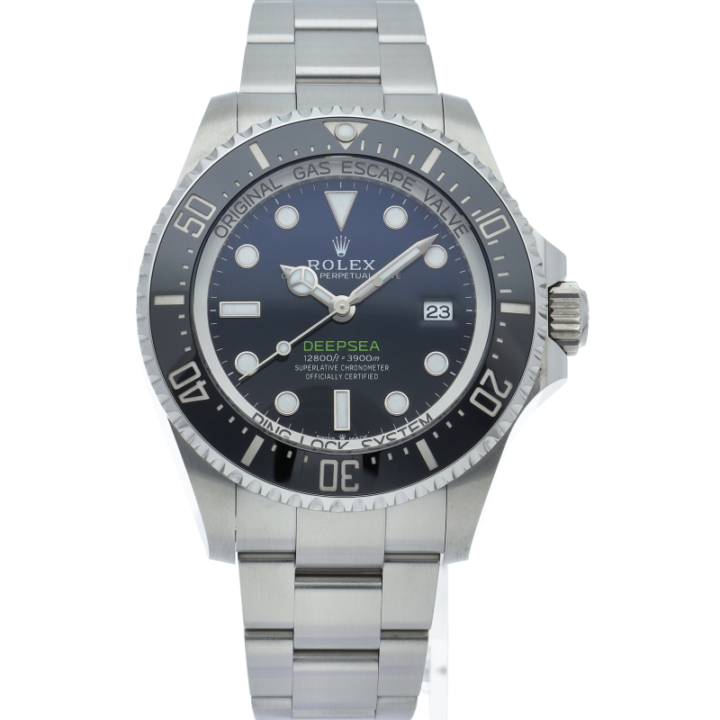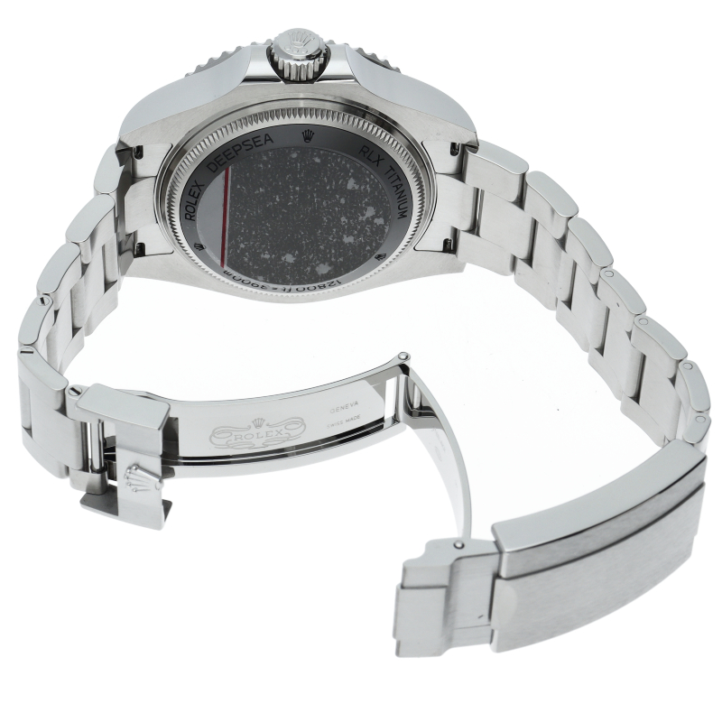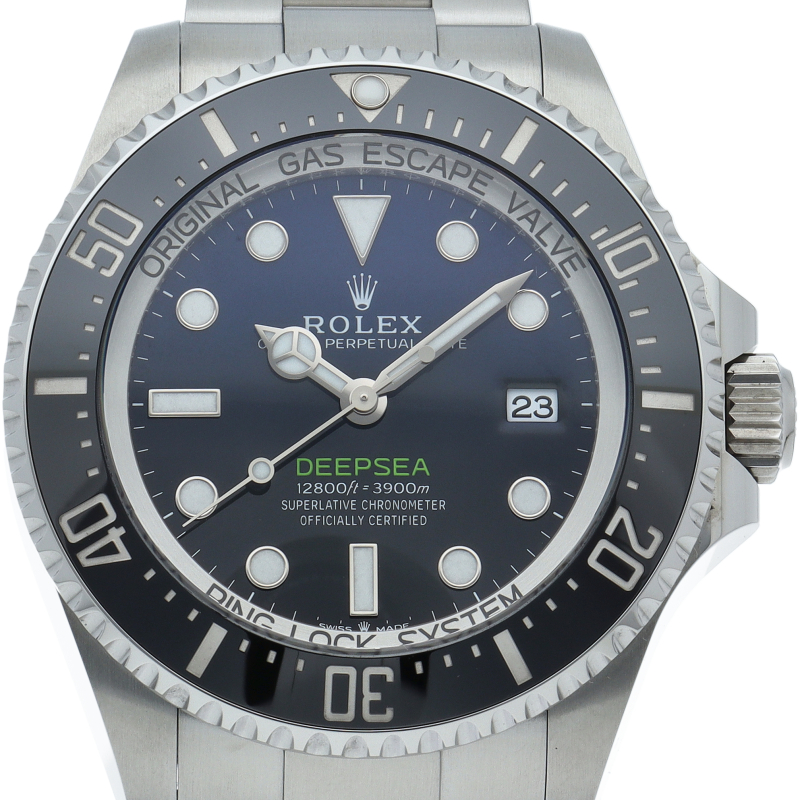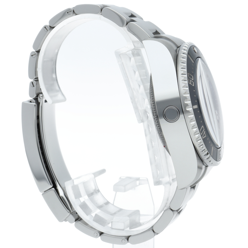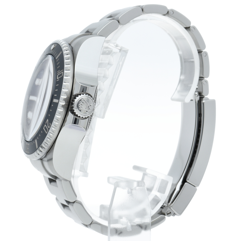 クロノメーター認定のモデルです。44mmの大型ケースと3900mの圧倒的な防水性能が特徴で、前作に続き強力な圧力にも耐える事が出来る“リングロックシステム”を搭載しております。ケースサイドにはヘリウムエスケープバルブを備え、ベゼルは耐傷性に優れたセラミック製です。バックルにはロレックス独自の“グライドロックエクステンションシステム”を備え、工具無しで長さの微調整が可能です