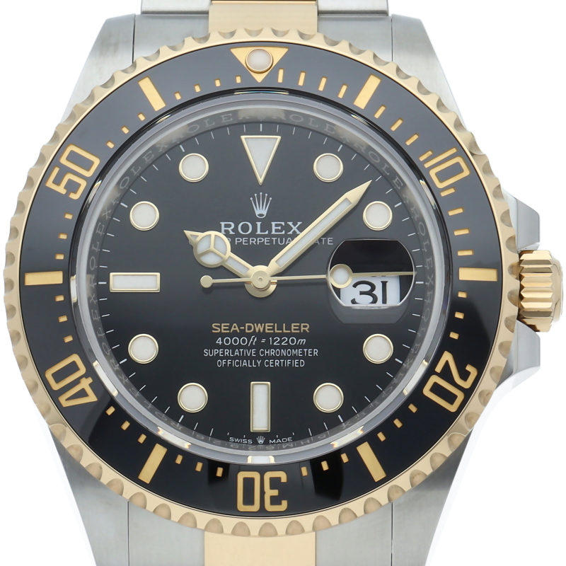 こちらは2019年のバーゼルワールドで発表されたシードゥエラーコレクションで初めてK18イエローゴールドを使用したロレゾールモデルです。直径43mmのケースには14件もの特許を取得し、新開発の脱進機のクロナジーエスケープメントを装備した上で70時間ものロングパワーリザーブを確保した自社開発キャリバー3235を搭載します。