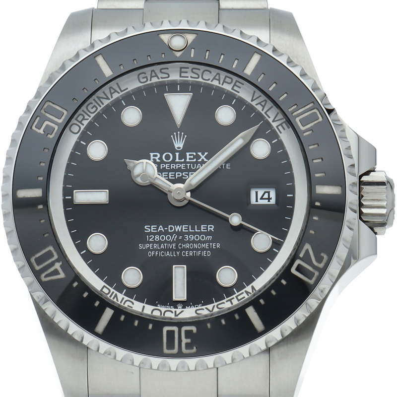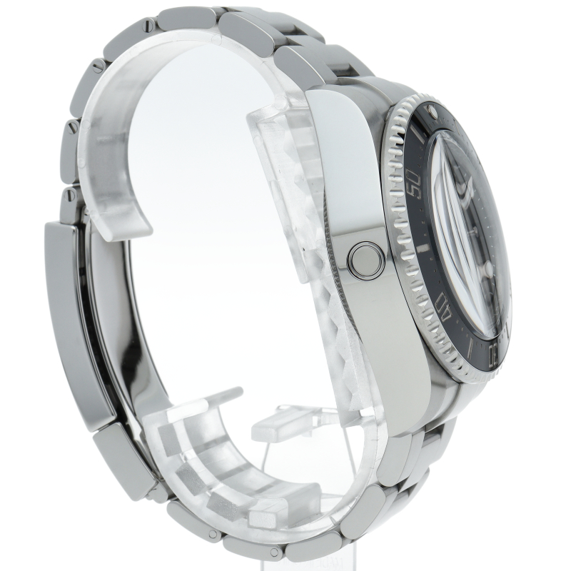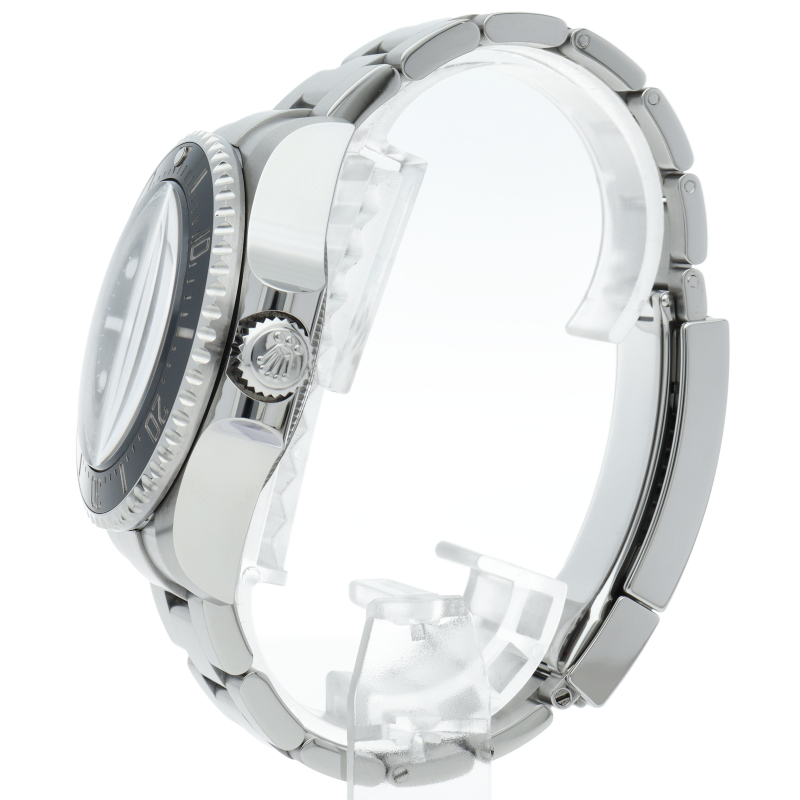 クロノメーター認定のモデルです。44mmの大型ケースと3900mの圧倒的な防水性能が特徴で、前作に続き強力な圧力にも耐える事が出来る“リングロックシステム”を搭載しております。ケースサイドにはヘリウムエスケープバルブを備え、ベゼルは耐傷性に優れたセラミック製です。バックルにはロレックス独自の“グライドロックエクステンションシステム”を備え、工具無しで長さの微調整が可能です。
