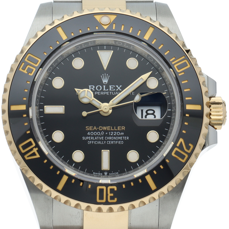 こちらは2019年のバーゼルワールドで発表されたシードゥエラーコレクションで初めてK18イエローゴールドを使用したロレゾールモデルです。直径43mmのケースには14件もの特許を取得し、新開発の脱進機のクロナジーエスケープメントを装備した上で70時間ものロングパワーリザーブを確保した自社開発キャリバー3235を搭載します。