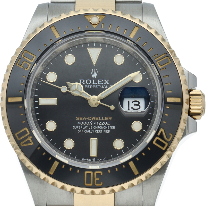 こちらは2019年のバーゼルワールドで発表されたシードゥエラーコレクションで初めてK18イエローゴールドを使用したロレゾールモデルです。直径43mmのケースには14件もの特許を取得し、新開発の脱進機のクロナジーエスケープメントを装備した上で70時間ものロングパワーリザーブを確保した自社開発キャリバー3235を搭載します。