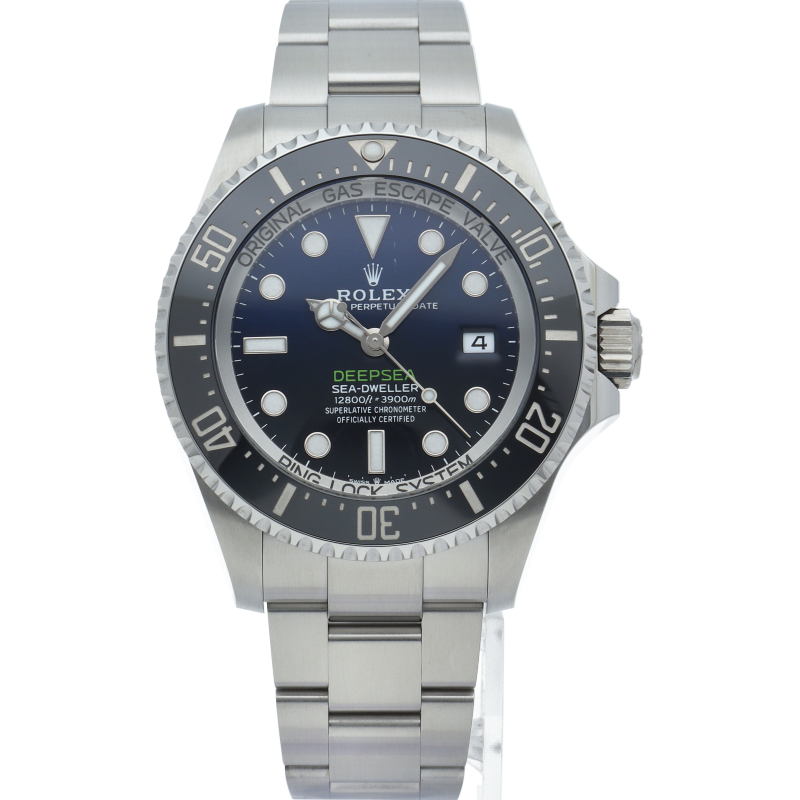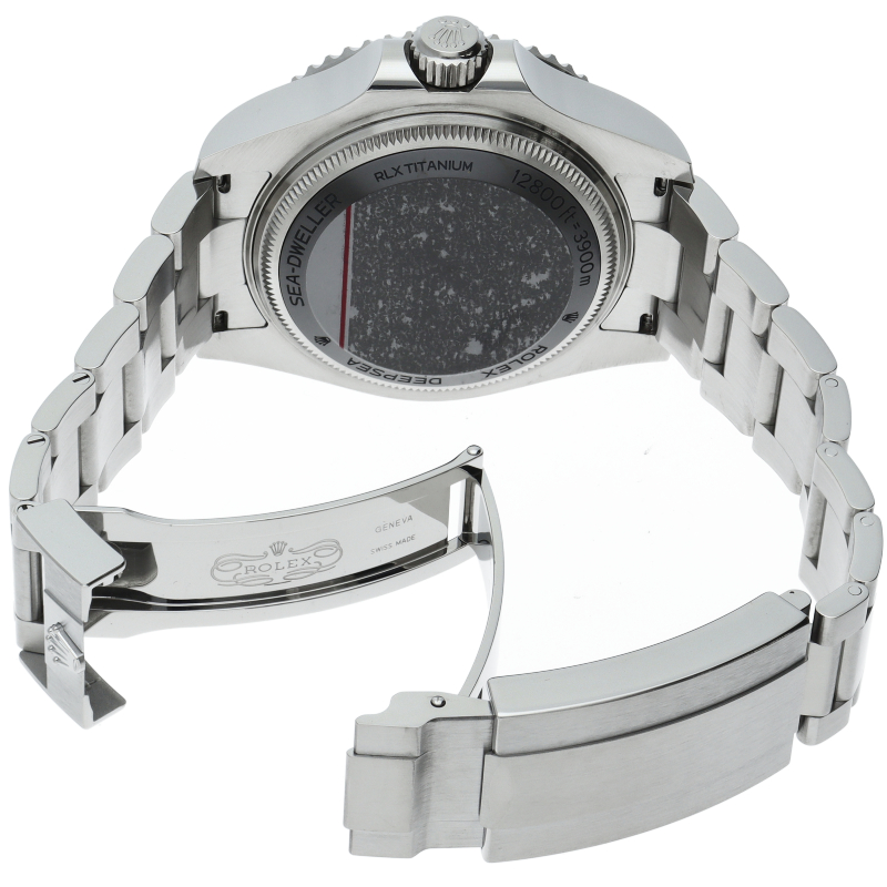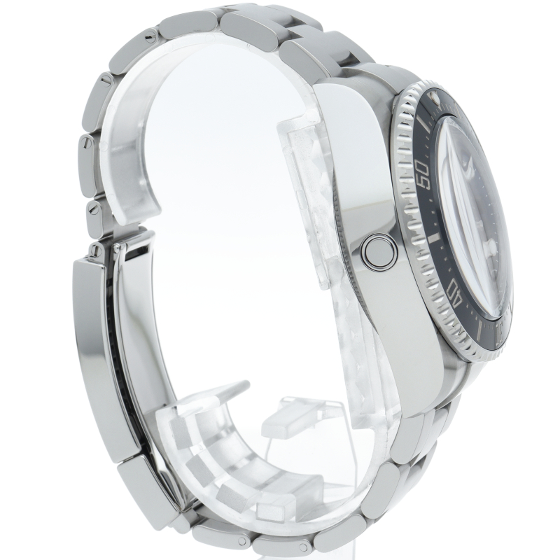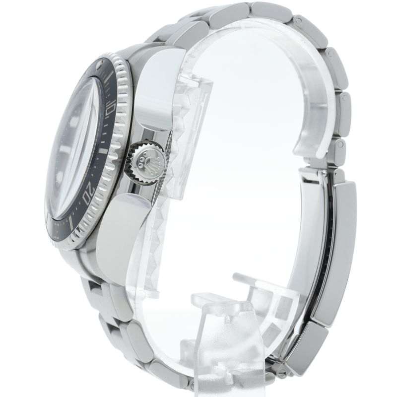 クロノメーター認定のモデルです。44mmの大型ケースと3900mの圧倒的な防水性能が特徴で、前作に続き強力な圧力にも耐える事が出来る“リングロックシステム”を搭載しております。ケースサイドにはヘリウムエスケープバルブを備え、ベゼルは耐傷性に優れたセラミック製です。バックルにはロレックス独自の“グライドロックエクステンションシステム”を備え、工具無しで長さの微調整が可能です