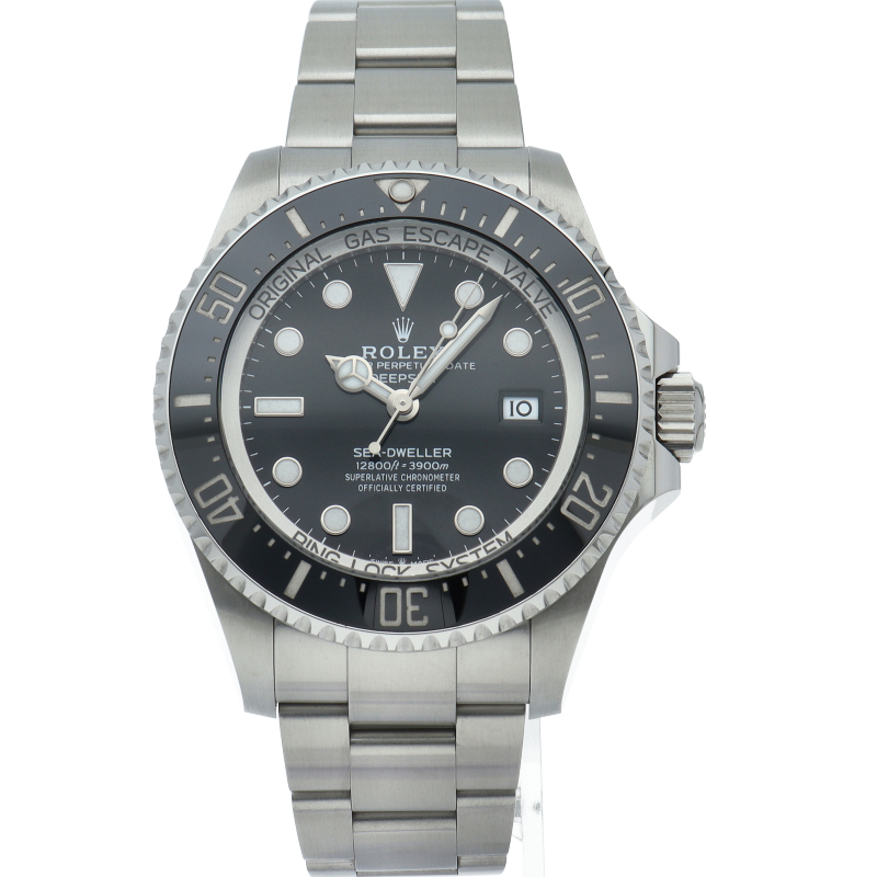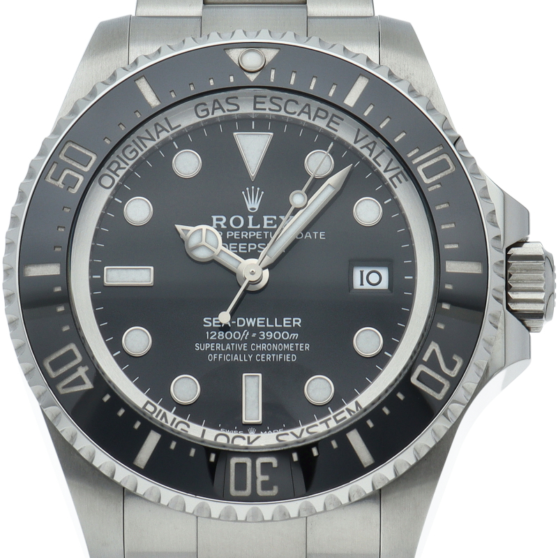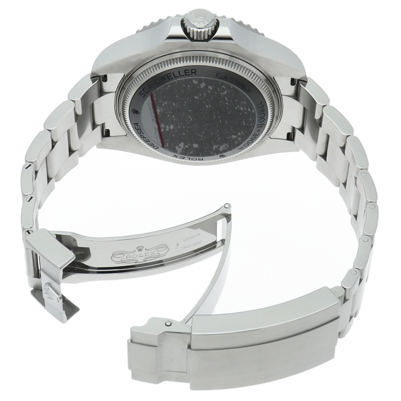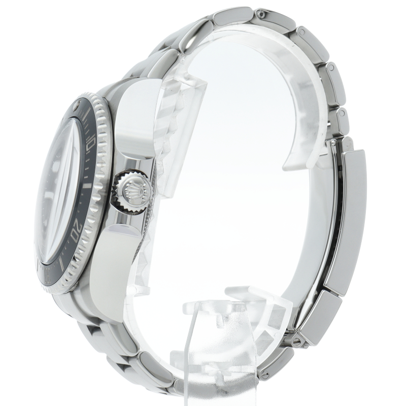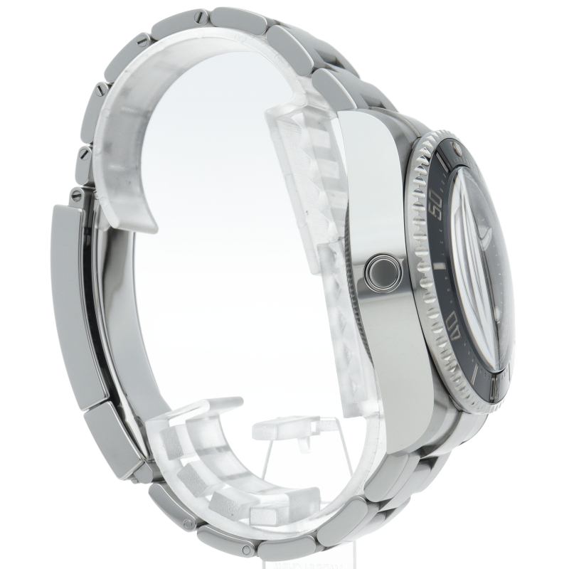クロノメーター認定のモデルです。44mmの大型ケースと3900mの圧倒的な防水性能が特徴で、前作に続き強力な圧力にも耐える事が出来る“リングロックシステム”を搭載しております。ケースサイドにはヘリウムエスケープバルブを備え、ベゼルは耐傷性に優れたセラミック製です。バックルにはロレックス独自の“グライドロックエクステンションシステム”を備え、工具無しで長さの微調整が可能です。