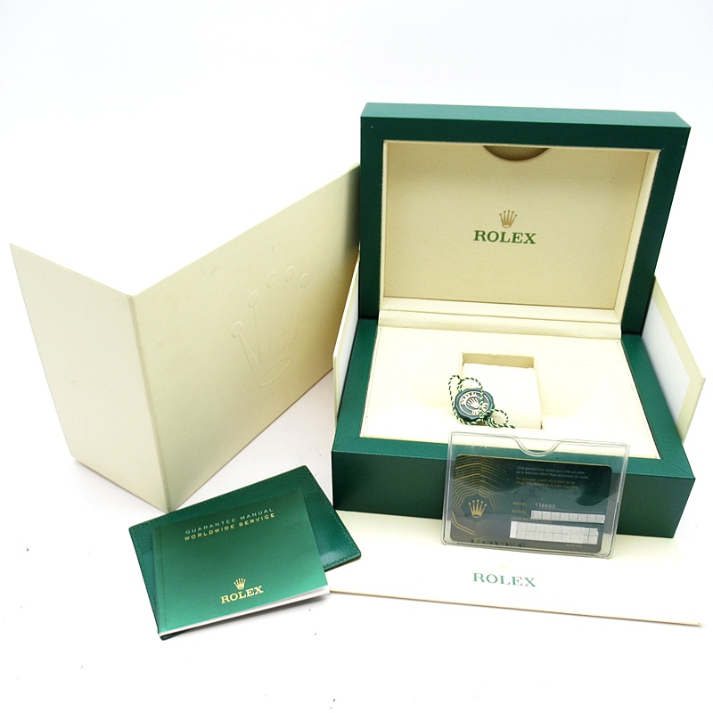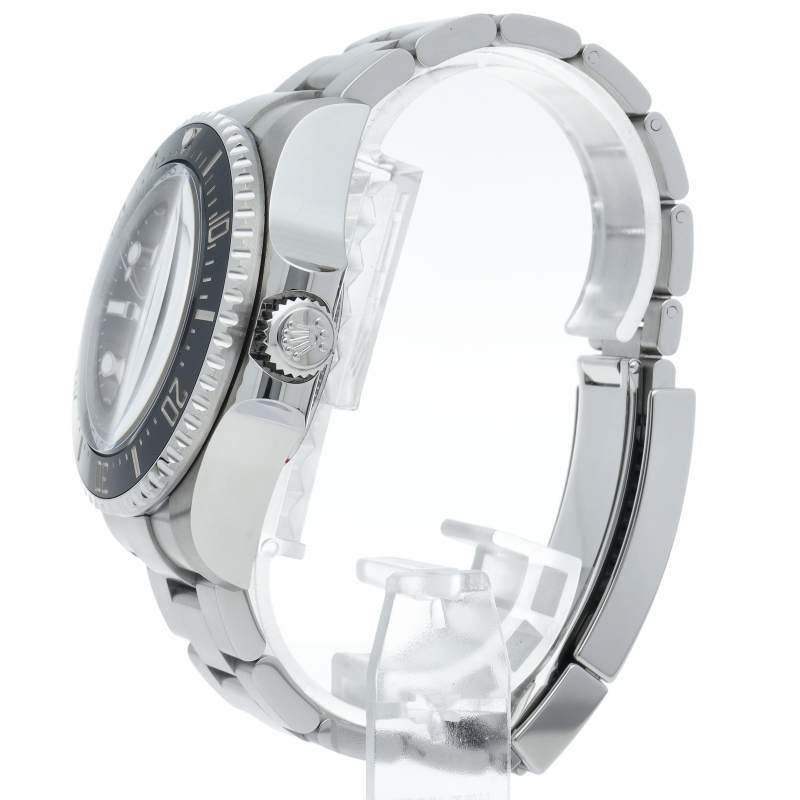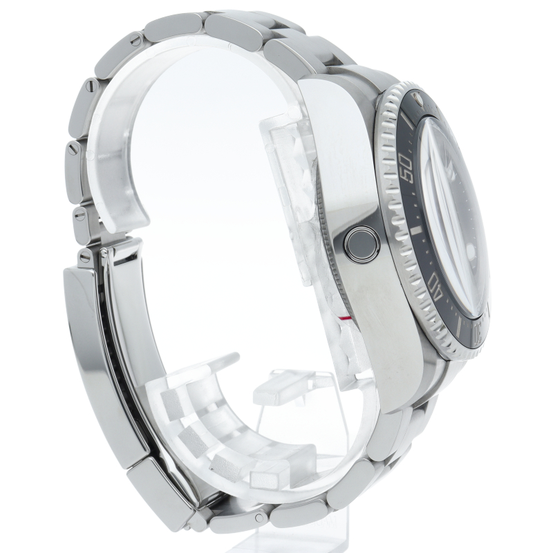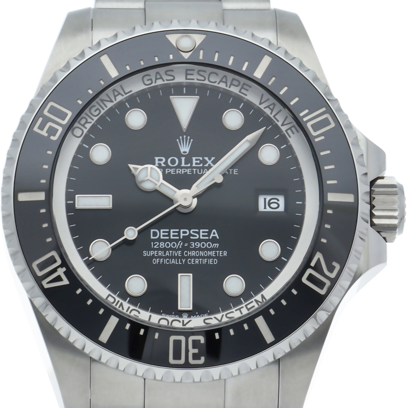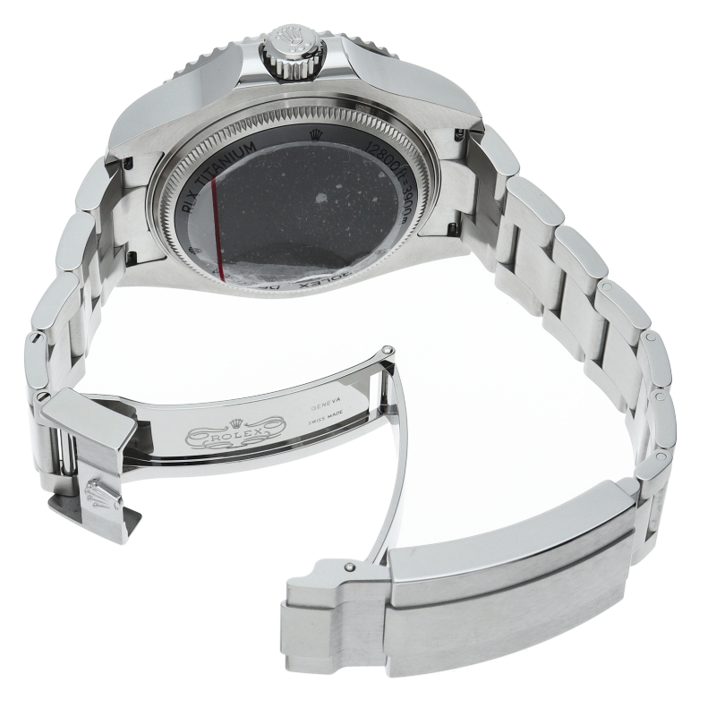 クロノメーター認定のモデルです。44mmの大型ケースと3900mの圧倒的な防水性能が特徴で、前作に続き強力な圧力にも耐える事が出来る“リングロックシステム”を搭載しております。ケースサイドにはヘリウムエスケープバルブを備え、ベゼルは耐傷性に優れたセラミック製です。バックルにはロレックス独自の“グライドロックエクステンションシステム”を備え、工具無しで長さの微調整が可能です。