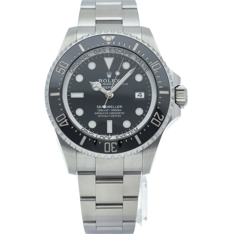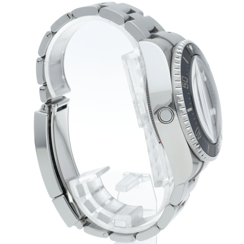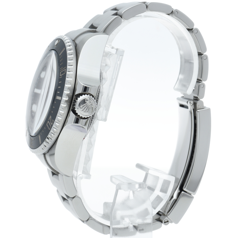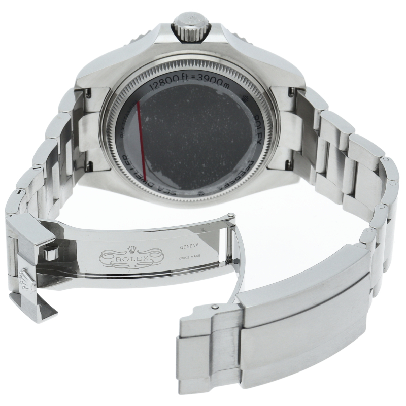 クロノメーター認定のモデルです。44mmの大型ケースと3900mの圧倒的な防水性能が特徴で、前作に続き強力な圧力にも耐える事が出来る“リングロックシステム”を搭載しております。ケースサイドにはヘリウムエスケープバルブを備え、ベゼルは耐傷性に優れたセラミック製です。バックルにはロレックス独自の“グライドロックエクステンションシステム”を備え、工具無しで長さの微調整が可能です。
