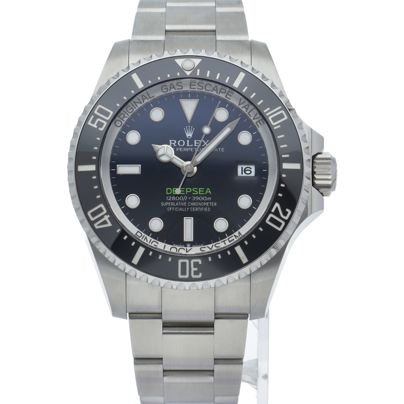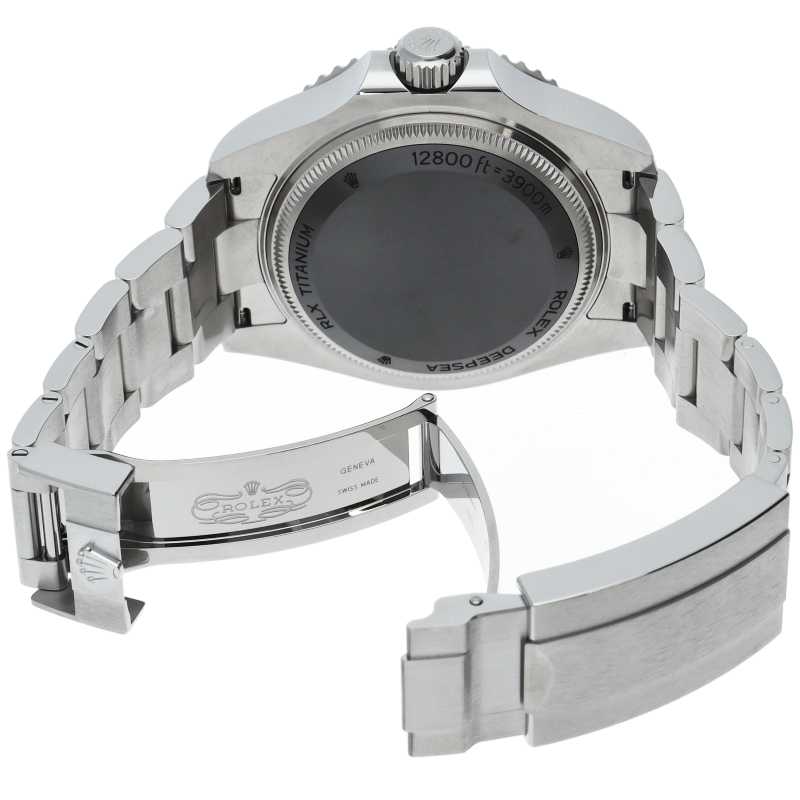 クロノメーター認定のモデルです。44mmの大型ケースと3900mの圧倒的な防水性能が特徴で、前作に続き強力な圧力にも耐える事が出来る“リングロックシステム”を搭載しております。ケースサイドにはヘリウムエスケープバルブを備え、ベゼルは耐傷性に優れたセラミック製です。バックルにはロレックス独自の“グライドロックエクステンションシステム”を備え、工具無しで長さの微調整が可能です。