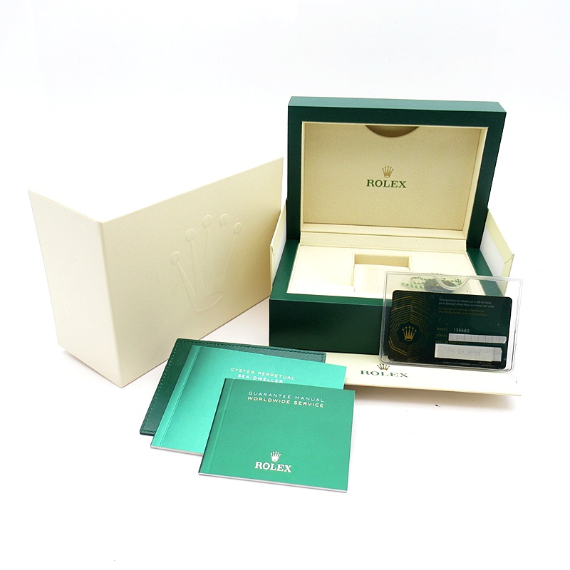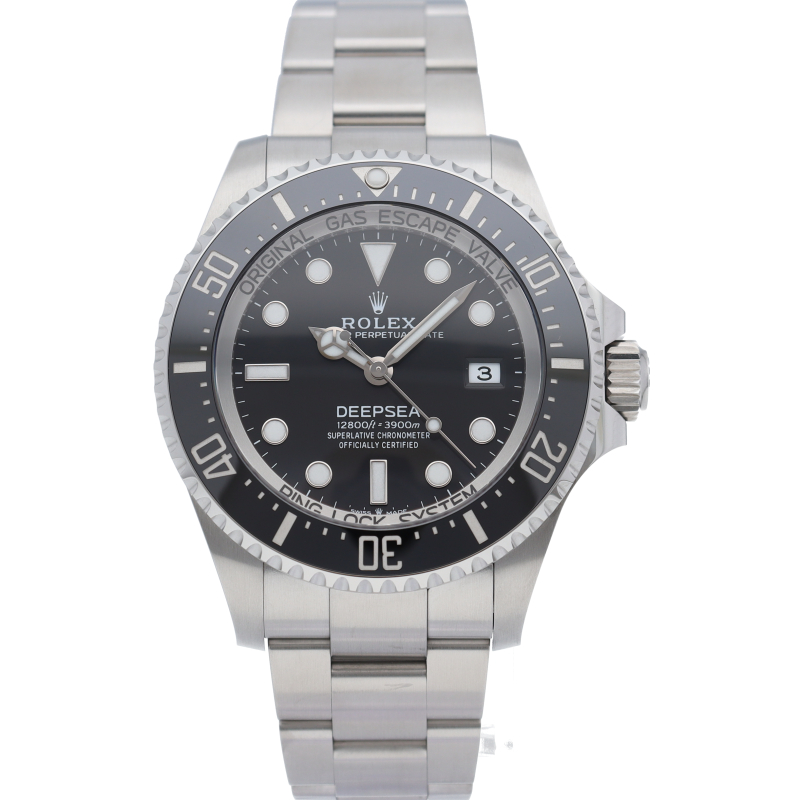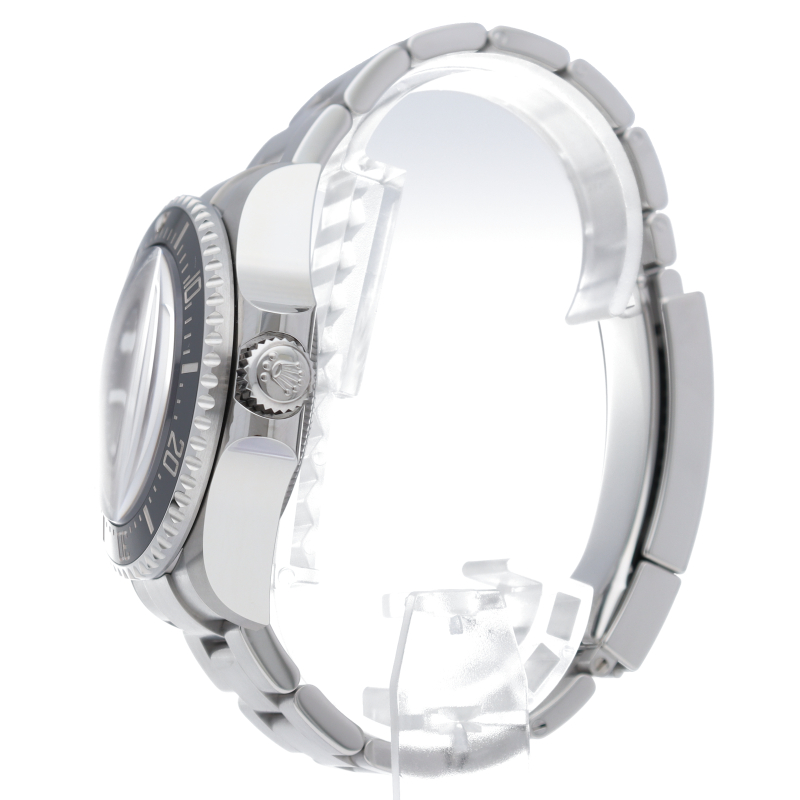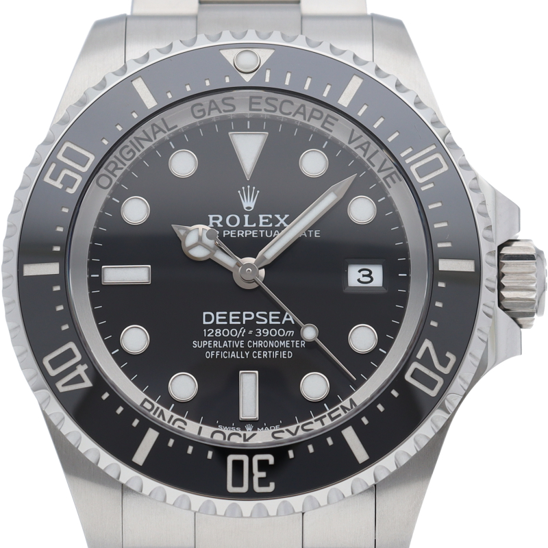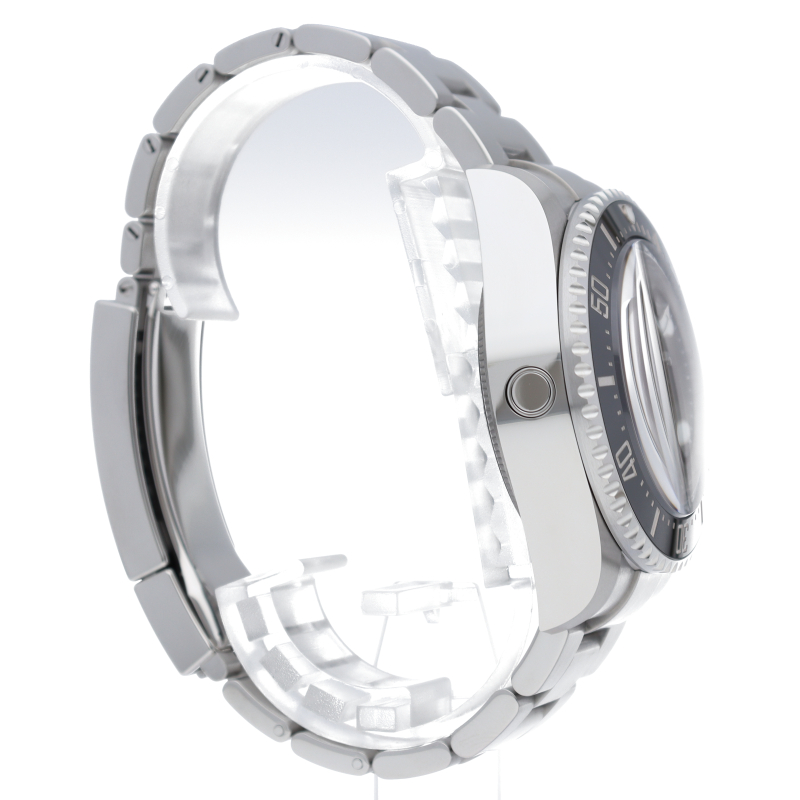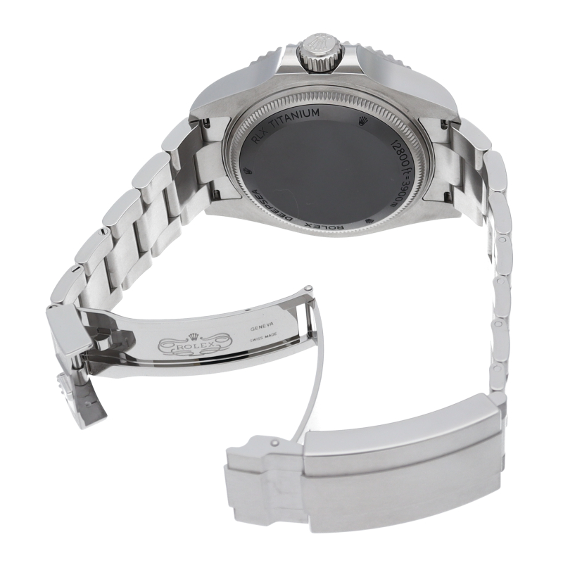 クロノメーター認定のモデルです。44mmの大型ケースと3900mの圧倒的な防水性能が特徴で、前作に続き強力な圧力にも耐える事が出来る“リングロックシステム”を搭載しております。ケースサイドにはヘリウムエスケープバルブを備え、ベゼルは耐傷性に優れたセラミック製です。バックルにはロレックス独自の“グライドロックエクステンションシステム”を備え、工具無しで長さの微調整が可能です。