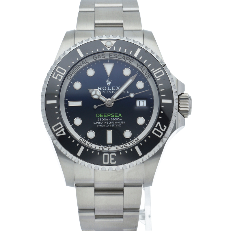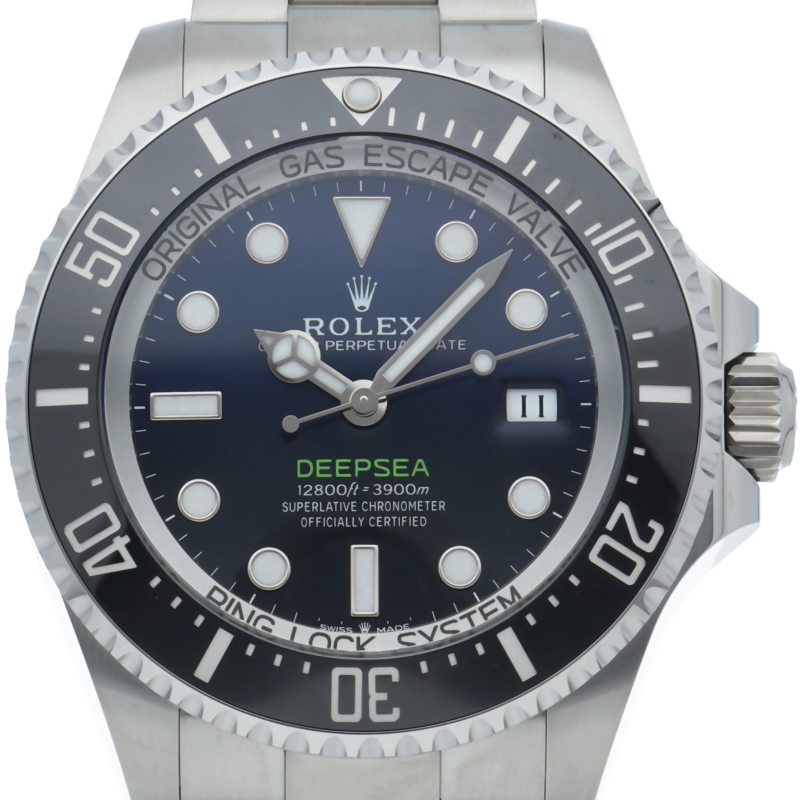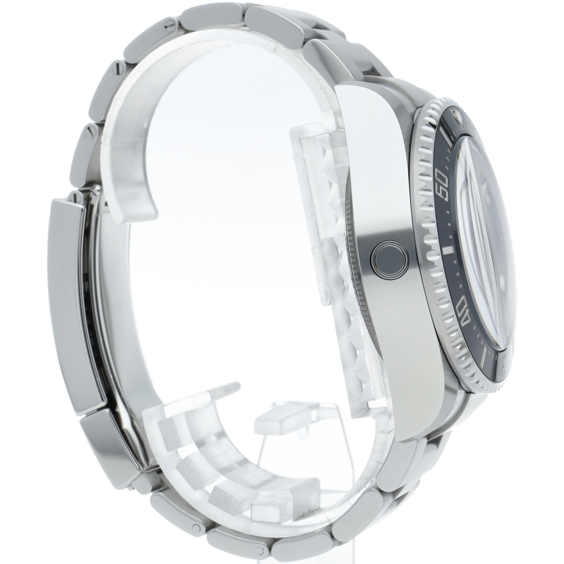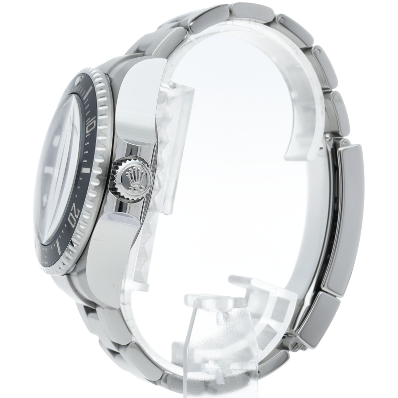 クロノメーター認定のモデルです。44mmの大型ケースと3900mの圧倒的な防水性能が特徴で、前作に続き強力な圧力にも耐える事が出来る“リングロックシステム”を搭載しております。ケースサイドにはヘリウムエスケープバルブを備え、ベゼルは耐傷性に優れたセラミック製です。バックルにはロレックス独自の“グライドロックエクステンションシステム”を備え、工具無しで長さの微調整が可能です。
