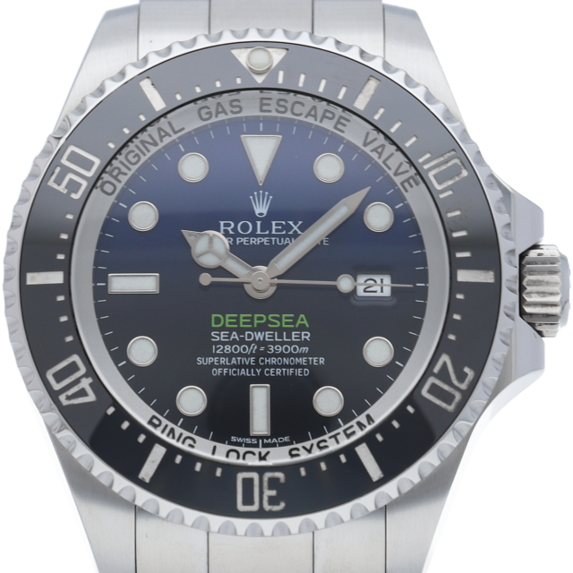地球最深部・マリアナ海溝の底に単独で到達した偉業を讃え、ジェームズ・キャメロンの歴史的な単独潜水を記念して発売されたモデルです。ダイアルは、あざやかなブルーから深海のようなブラックへとグラデーションされた唯一無二のカラーです。生産終了にともなって相場が高騰中でこれからが楽しみな1本です。