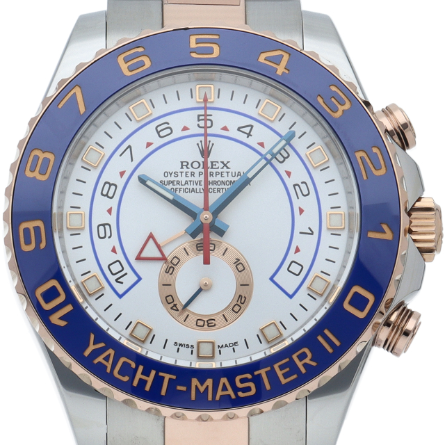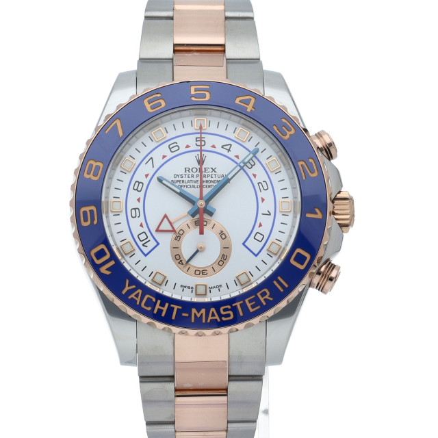 ヨットレース競技に特化した「ヨットマスター2」。ロック&リリース機能、シンクロナイゼーション機能、プログラマブル・カウントダウン機能に加え、最大10分までのカウントダウンクロノを搭載した『プログラマブル・クロノグラフ』を採用。ロレックスならではの実用性と高級感にあふれたコンプリケーションウォッチです。最新のピンクゴールドコンビとの相性も抜群の一本です。