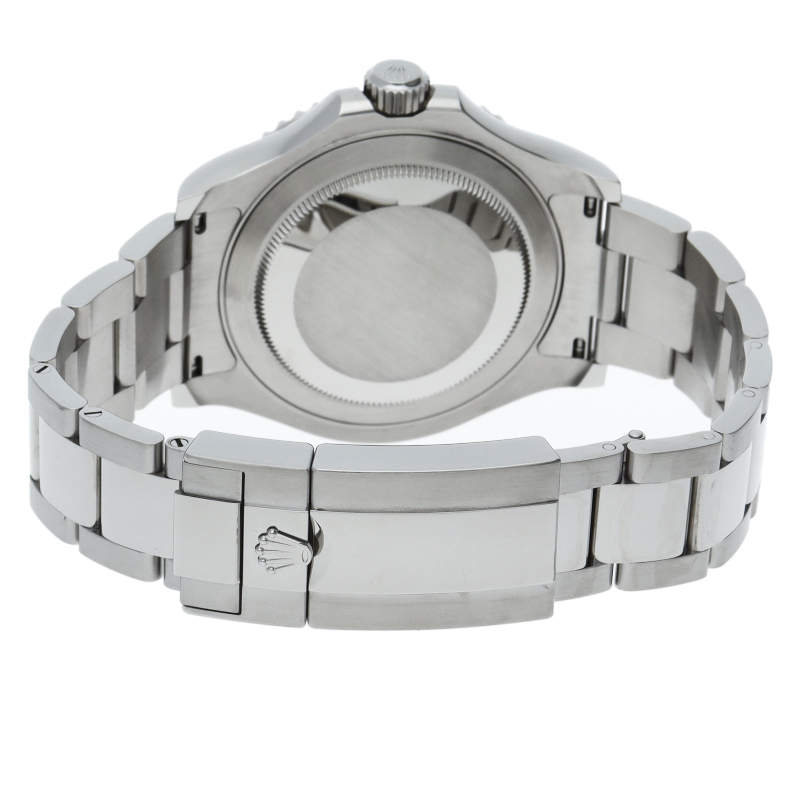 ワンランク上のスポーツモデル「ヨットマスター」。搭載されている自社製ムーブメントには、ロレックスが5年間を費やして開発したパラクロムヒゲゼンマイを採用。ドットのインデックスには青白い発光をするクロマライト塗料となりました。またオイスターロッククラスプを採用することで高級感が向上しています。