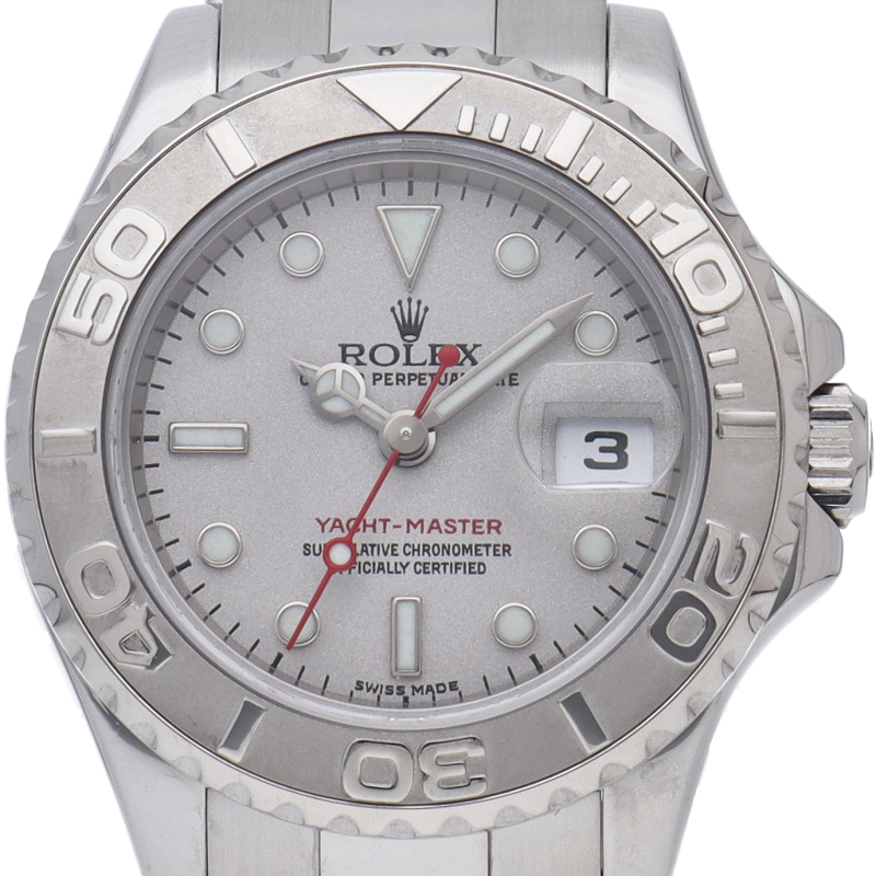ワンランク上のスポーツモデル「ヨットマスター」。ベゼルと文字盤には贅沢なプラチナが使用され、上品で高級感ある作りが人気です。