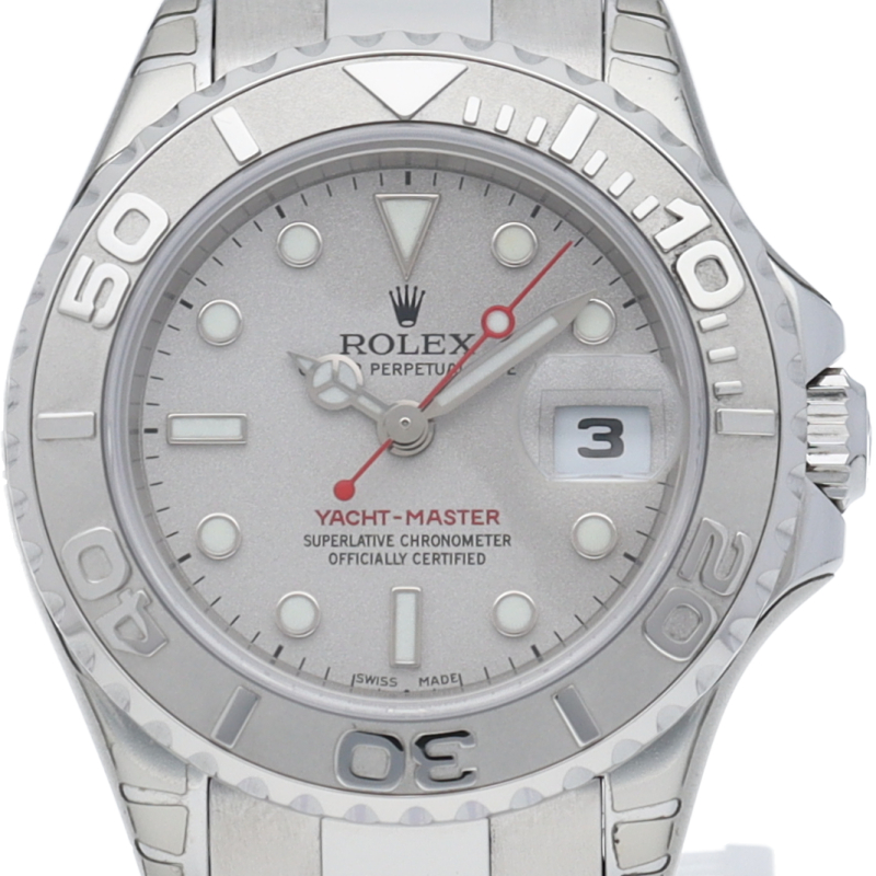 ワンランク上のスポーツモデル「ヨットマスター」。ベゼルと文字盤には贅沢なプラチナが使用され、上品で高級感ある作りが人気です。