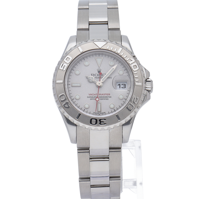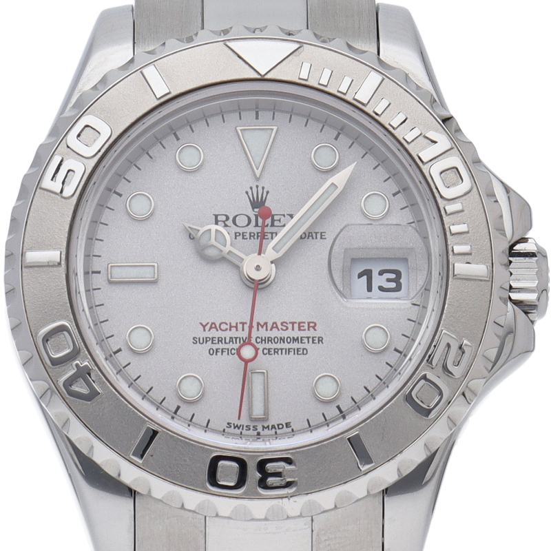 ワンランク上のスポーツモデル「ヨットマスター」。ベゼルと文字盤には贅沢なプラチナが使用され、上品で高級感ある作りが人気です。すでに廃盤となったレディースサイズです。