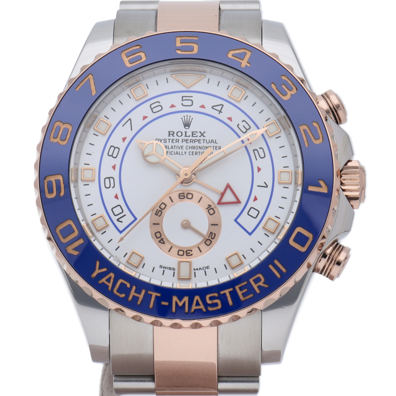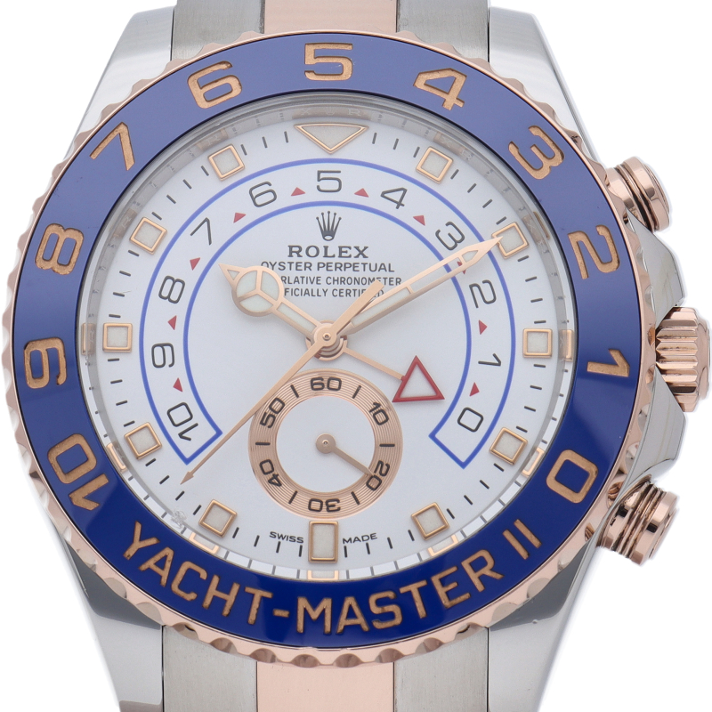 ヨットレース競技に特化した「ヨットマスター2」。ロック&リリース機能、シンクロナイゼーション機能、プログラマブル・カウントダウン機能に加え、最大10分までのカウントダウンクロノを搭載した『プログラマブル・クロノグラフ』を採用。ロレックスならではの実用性と高級感にあふれたコンプリケーションウォッチです。最新のピンクゴールドコンビとの相性も抜群の一本です。