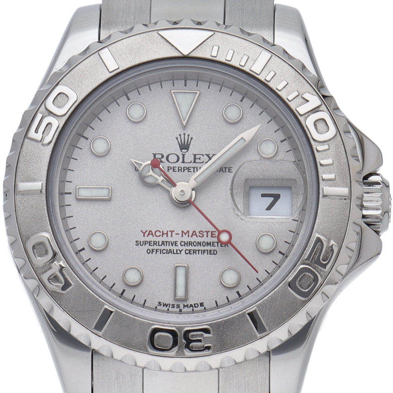 ワンランク上のスポーツモデル「ヨットマスター」。ベゼルと文字盤には贅沢なプラチナが使用され、上品で高級感ある作りが人気です。