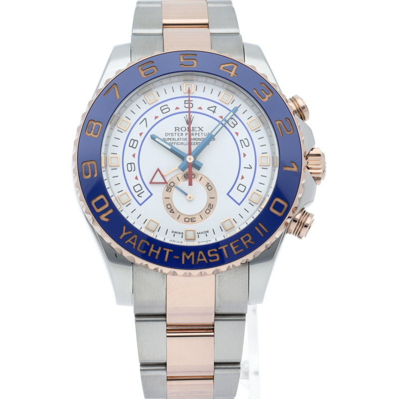 ヨットレース競技に特化した「ヨットマスター2」。ロック&リリース機能、シンクロナイゼーション機能、プログラマブル・カウントダウン機能に加え、最大10分までのカウントダウンクロノを搭載した『プログラマブル・クロノグラフ』を採用。ロレックスならではの実用性と高級感にあふれたコンプリケーションウォッチです。最新のピンクゴールドコンビとの相性も抜群の一本です。