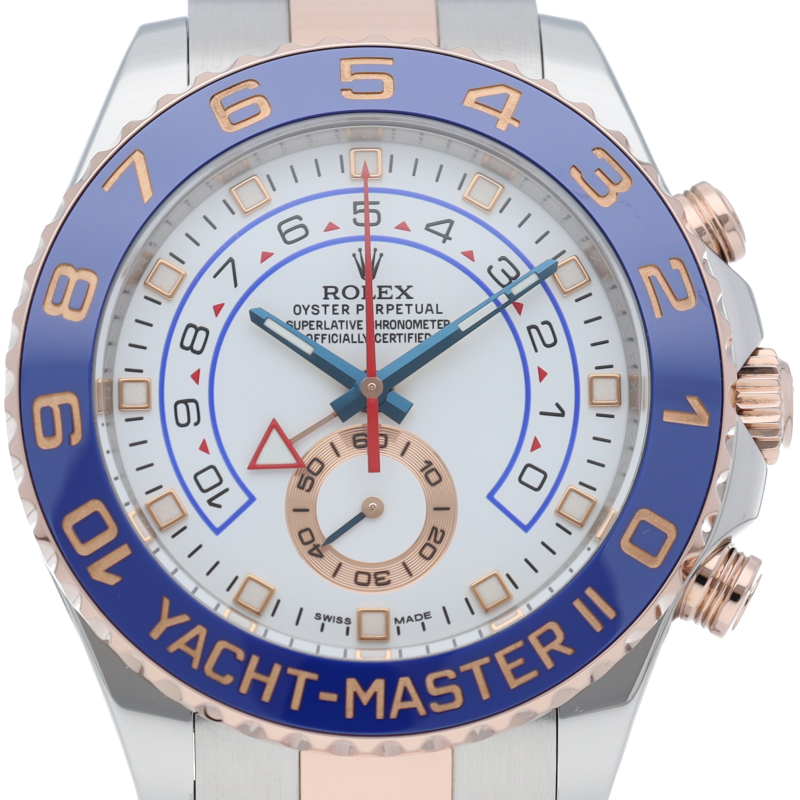 ヨットレース競技に特化した「ヨットマスター2」。ロック&リリース機能、シンクロナイゼーション機能、プログラマブル・カウントダウン機能に加え、最大10分までのカウントダウンクロノを搭載した『プログラマブル・クロノグラフ』を採用。ロレックスならではの実用性と高級感にあふれたコンプリケーションウォッチです。最新のピンクゴールドコンビとの相性も抜群の一本です。