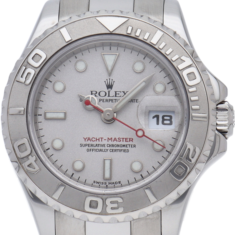 ワンランク上のスポーツモデル「ヨットマスター」。ベゼルと文字盤には贅沢なプラチナが使用され、上品で高級感ある作りが人気です。すでに廃盤となったレディースサイズです。